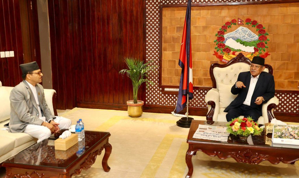 काठमाडौं । प्रधानमन्त्री पुष्पकमल दाहाल ‘प्रचण्ड’सँग राष्ट्रियसभाका अध्यक्ष गणेशप्रसाद तिमिल्सिनाले प्रधानमन्त्री निवास बालुवाटारमा आज बिहान भेटवार्ता गरेका छन् ।