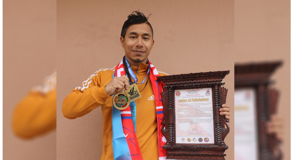 काठमाडौं । नेपाली कराते खेलाडी सुमन तिमल्सिनाले युएस ओपन आइएसकेए विश्व मार्सल आर्ट्स च्याम्पियनसिपमा स्वर्ण पदक जितेका छन् । सुमनले सिनियर पुरुष एकल कातामा स्वर्ण पदक जितेका हुन् ।