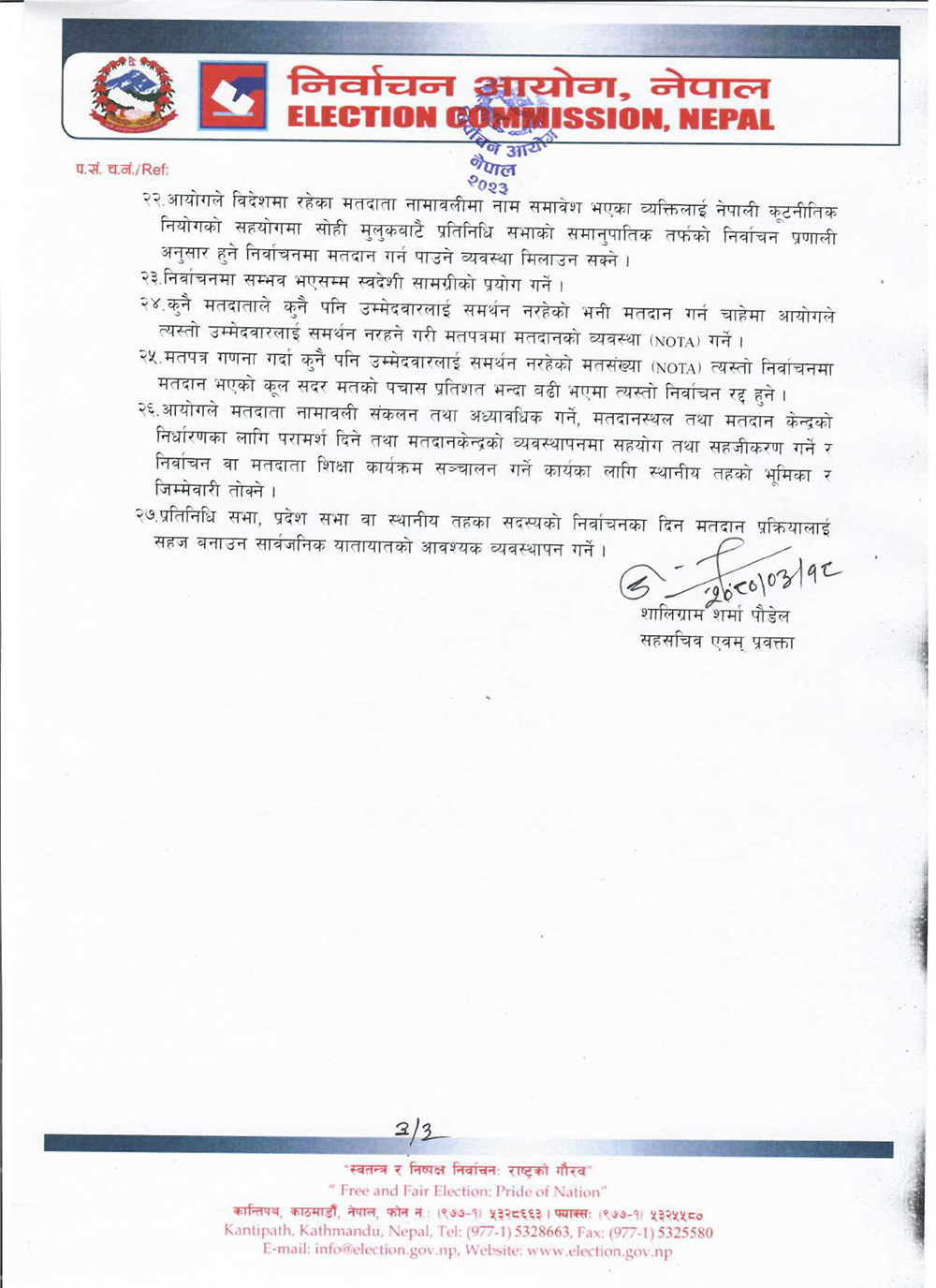 आयोगको सोमबार बसेको बैठकले निर्वाचनसम्बन्धी कानुनलाई संशोधन र एकीकरण गर्न बनेको विधेयकको मस्यौदा पास गरेको छ ।