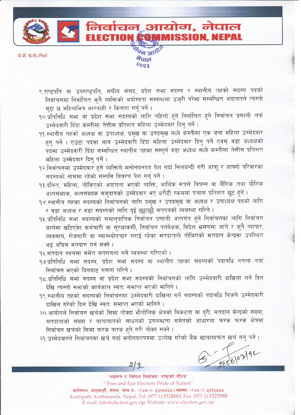 त्यस्तै, बैठकले प्रत्यक्ष निर्वाचनतर्फ दलहरुले कम्तीमा ३३ प्रतिशत महिला उम्मेदवार बनाउनुपर्ने कानुनी व्यवस्था गर्ने निर्णय गरेको छ ।