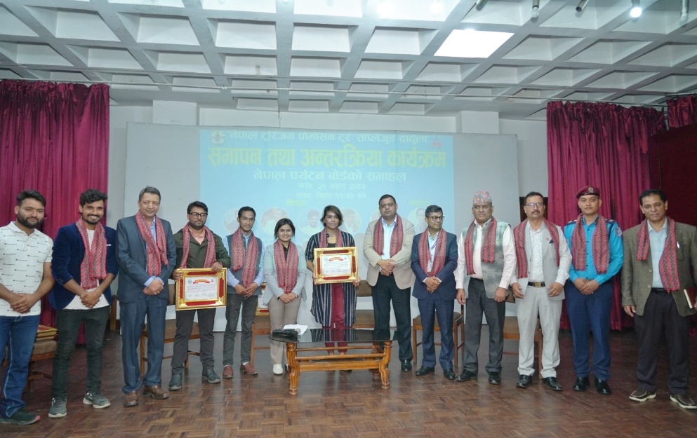 नेपाल पर्यटन बोर्डका प्रमुख अधिकृत डा. धनञ्जय रेग्मी, संस्कृति पर्यटन तथा नागरिक उड्डयन मन्त्रालयका उपसचिव सरोज पोख्रेल, नेपाल एशोसिएसन अफ टूर एण्ड ट्राभल एजेन्टस (नाट्टा) का निवर्तमान अध्यक्ष अच्युत गुरागाइँ, नेपाल पर्यटन बोर्डका सिनियर म्यानेजर सुनिल शर्मा र टूरका संयोजक विष्णु विवेक विश्वकर्माले संयुक्त रूपमा प्रमाणपत्र हस्तान्तरण गरिएको हो ।