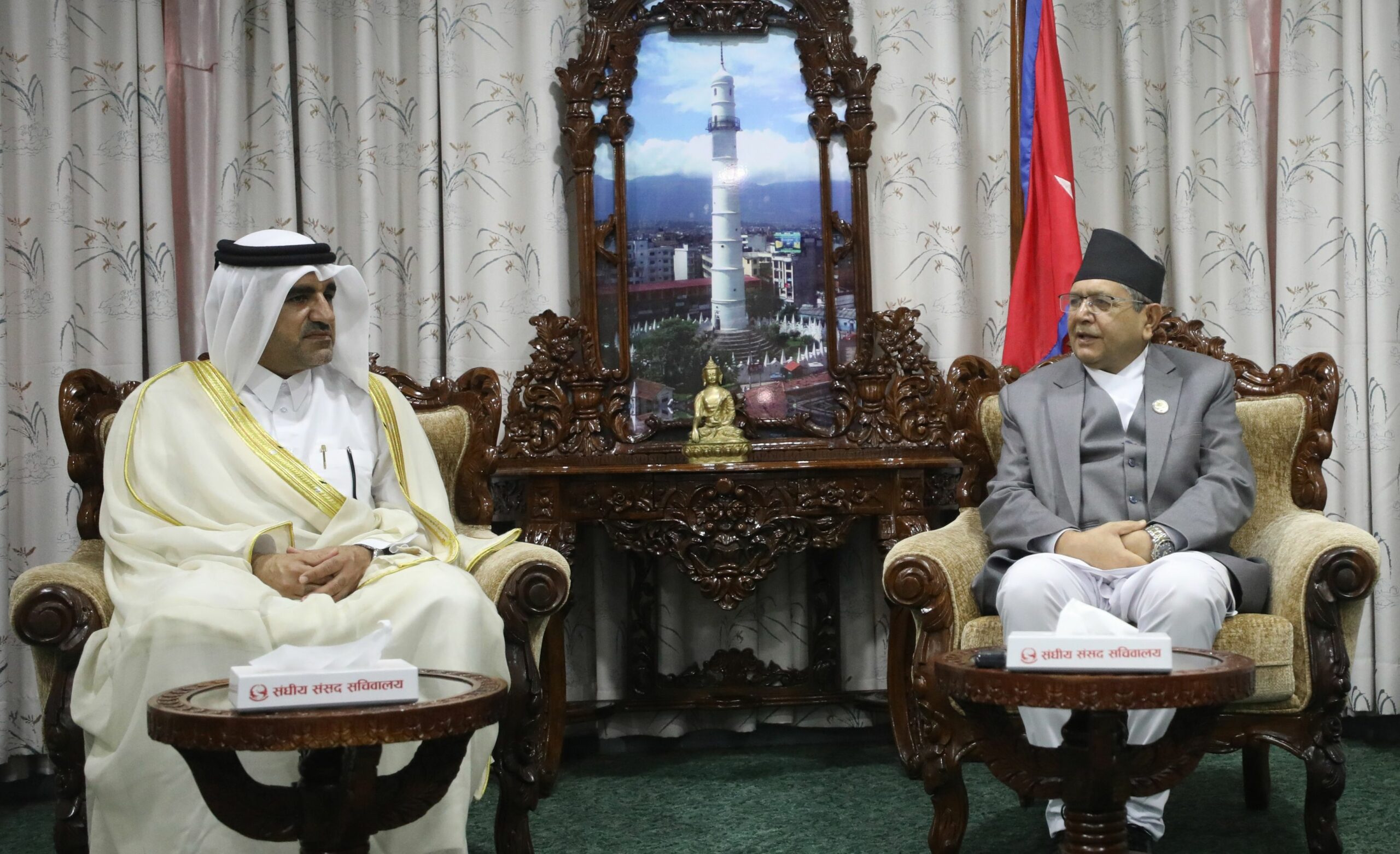 सभामुखको कार्यकक्षमा भएको भेटमा दुई देशको सम्बन्ध, नेपाली श्रमिकको रोजगार सुरक्षा, व्यापार, उड्डयन, संसदीय आदान प्रदान लगायतका विषयमा संवाद भएको थियो । कतारी राजदूत सात वर्षे कार्यकाल पूरा गरेर स्वदेश फर्कँदैछन् ।