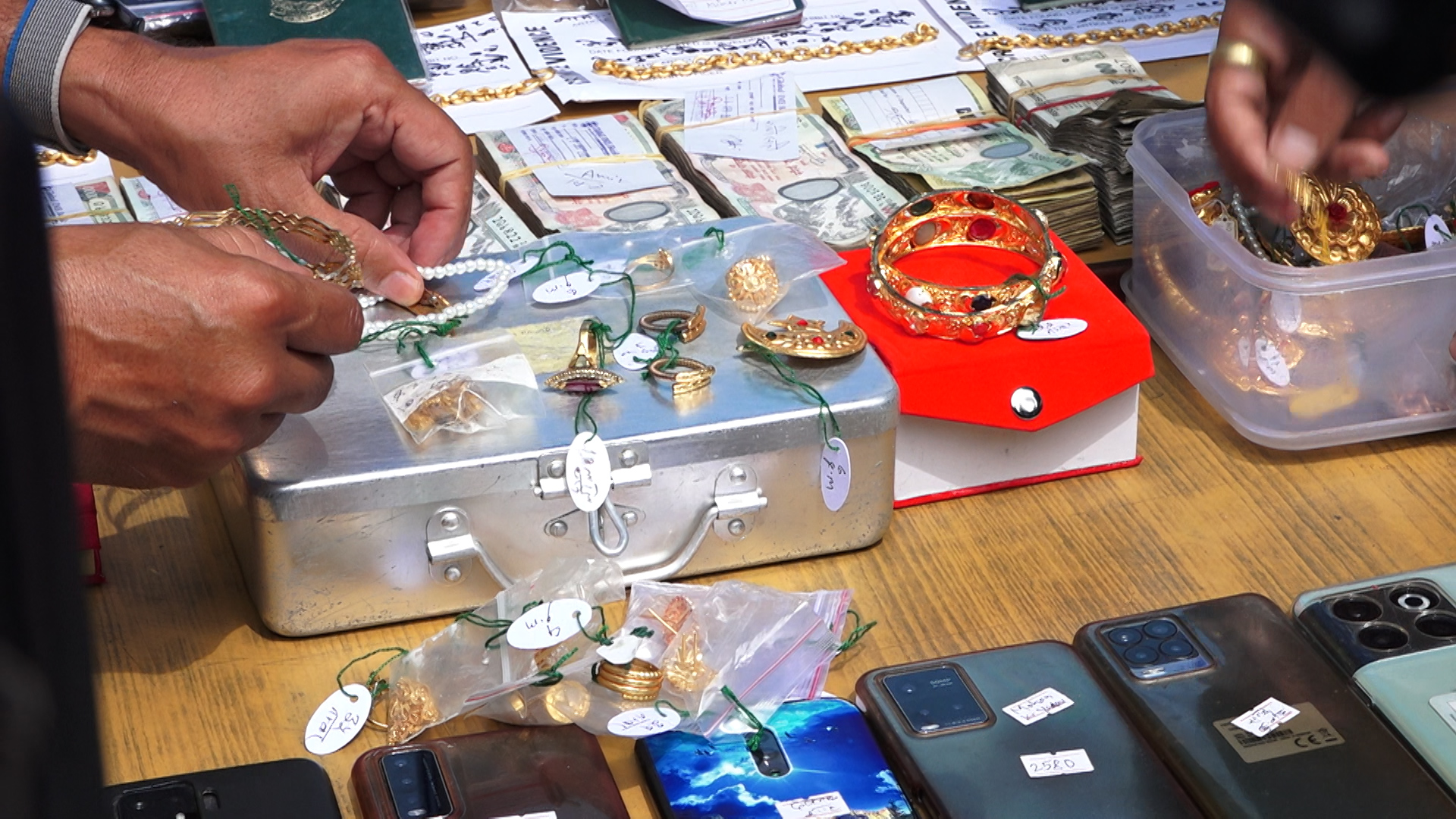 विभिन्न समयमा वैदेशिक रोजगारीमा गएर नेपाल फर्किएका श्रमिकहरुलाई प्रयोग गरेर सुन तस्करको समुहले श्रमिकमार्फत सुन तस्करी गर्ने गरेको खुल्न आएपछि प्रहरीले गैह्रकानूनी रुपमा तस्करको सुन बोकेर नेपाल आएका केही श्रमिलाई उपत्यका अपराध अनुसन्धान कार्यालयको टोलीले पक्राउ गरी आज सार्वजनिक गरेको छ ।