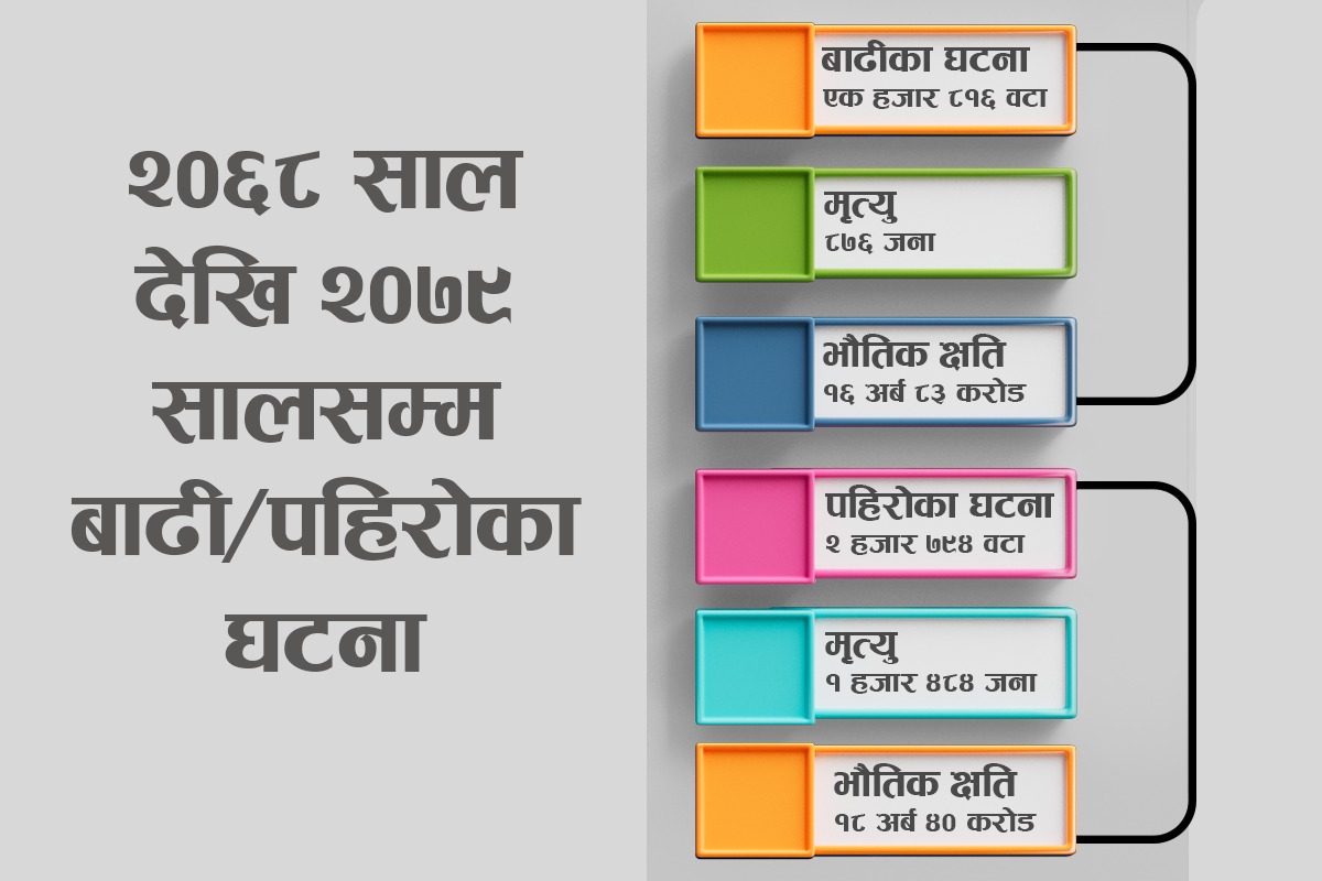 यसवर्षको मात्रै होइन विगतका वर्षको तथ्याङ्क केलाउँदा पनि बाढीको भन्दा पहिरोजन्य घटना अत्यन्तै बढेर गएको छ ।