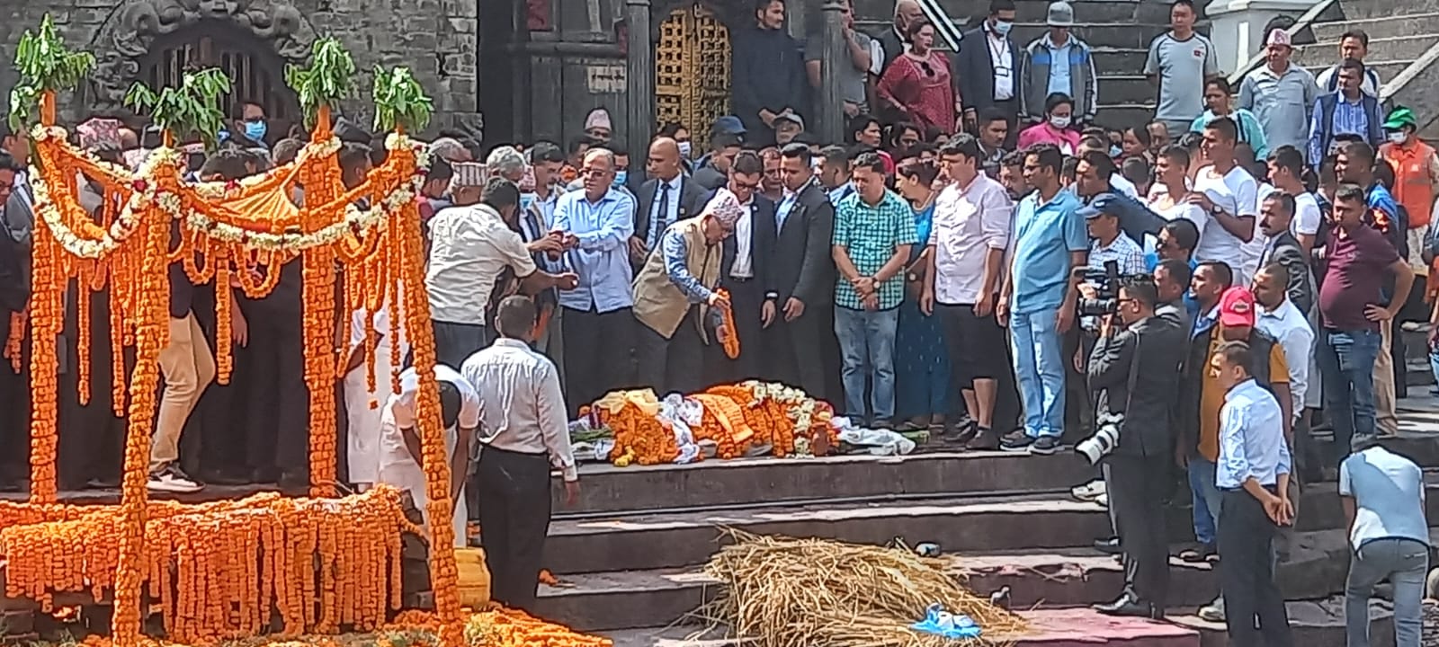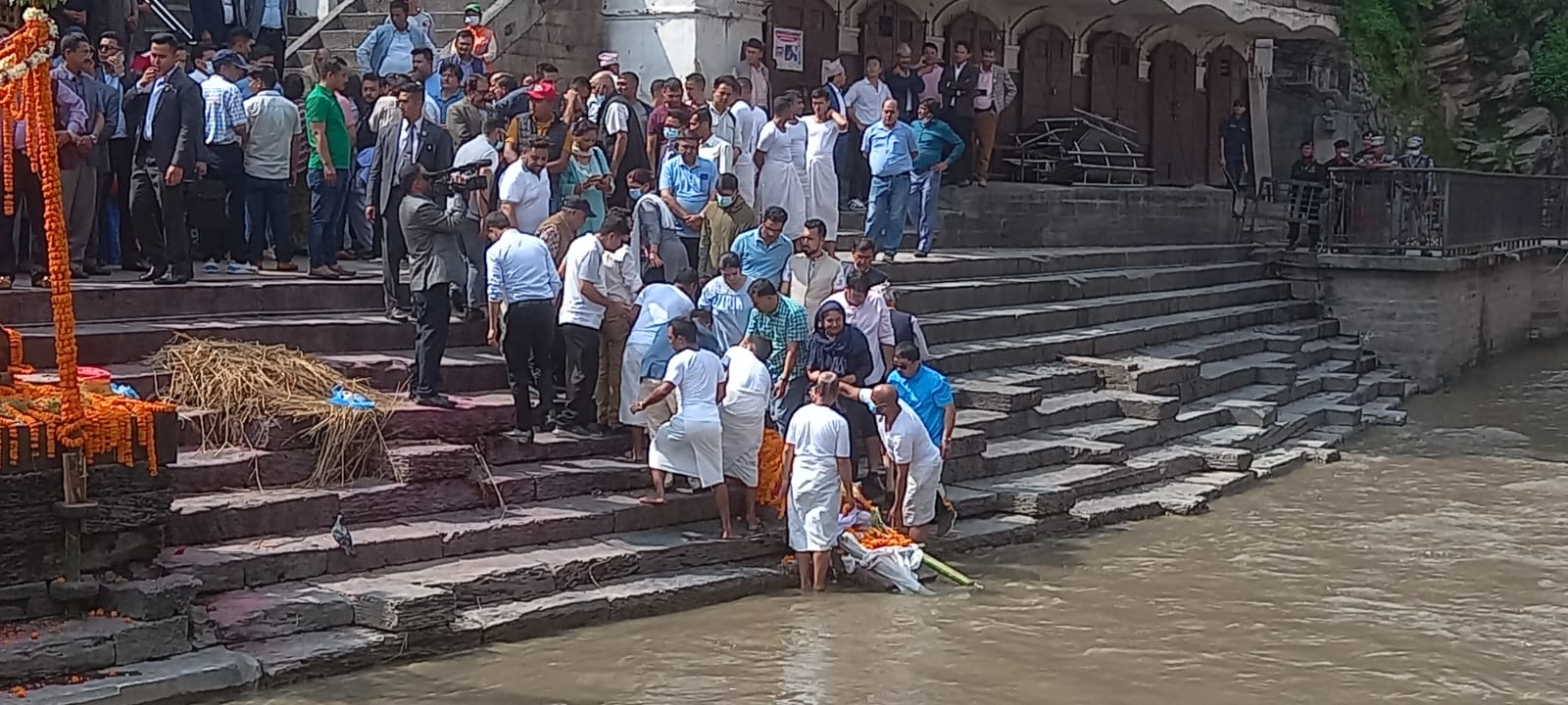 त्यस्तै, आर्यघाटमा मन्त्रीगण, सरकारी अधिकारी, नेकपा (माओवादी केन्द्र) का नेता तथा कार्यकर्ता र शुभेच्छुकको बाँक्लो उपस्थिति थियो ।