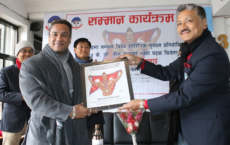 काठमाडौं । नेपाल स्क्वास -याकेट्स संघले १० औँ विश्व शारीरिक सुगठन च्याम्पियनसिपका स्वर्ण पदक विजेता महेश्वर महर्जन नगदसहित सम्मानित भएका छन् ।