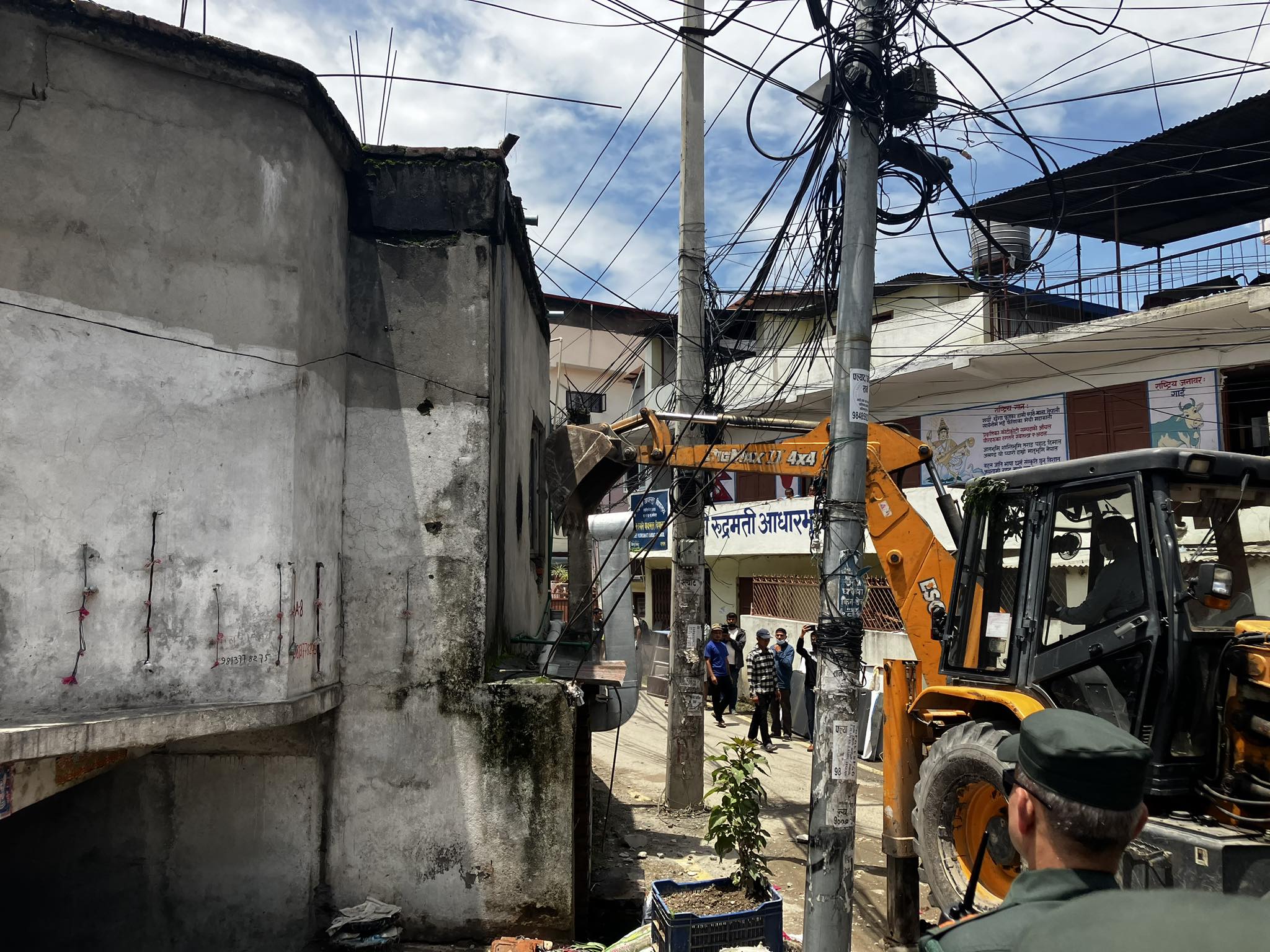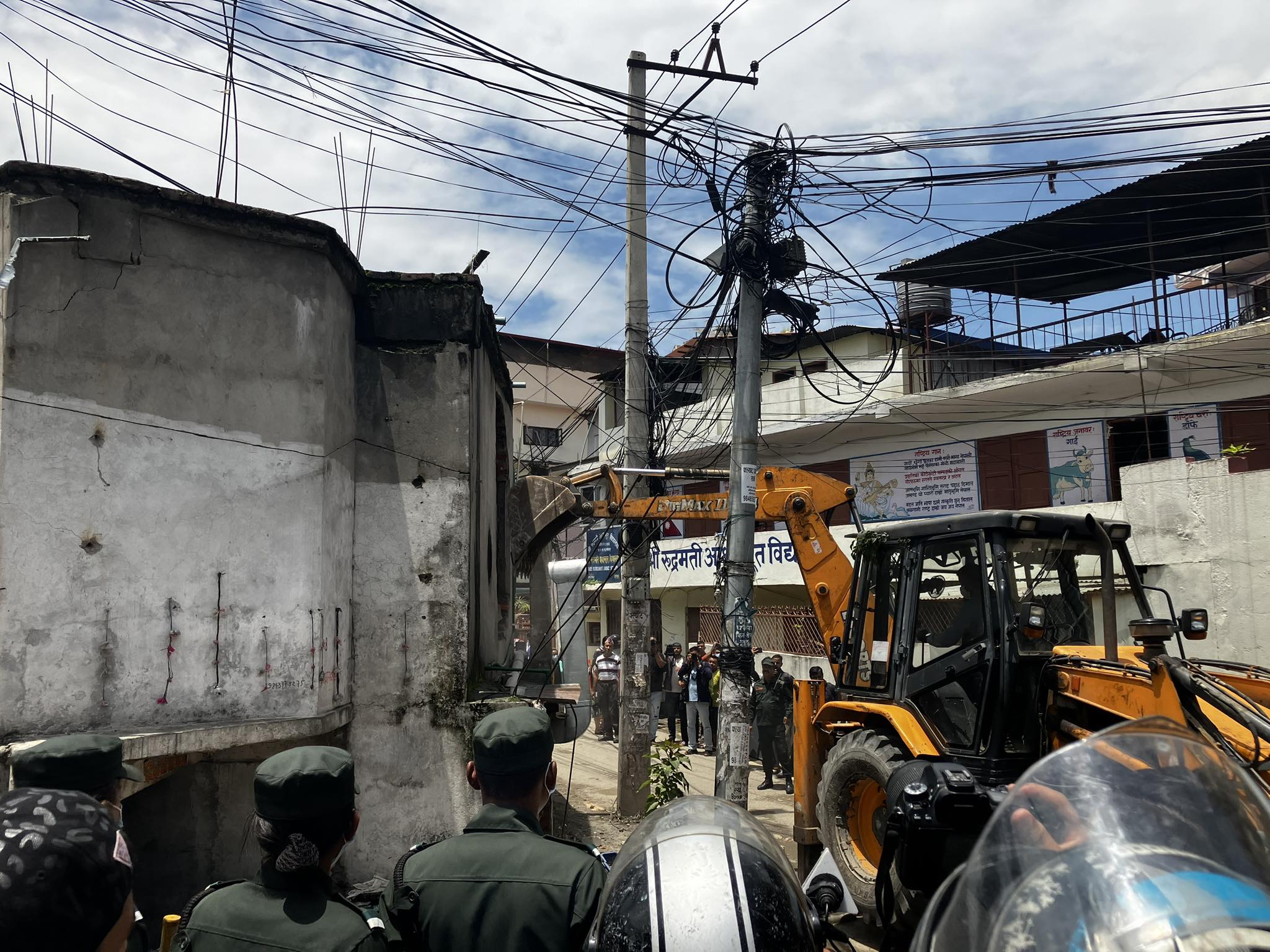 नगरप्रहरीले तीन दिन अघि उक्त भवन खाली गर्न भनेको थियो ।