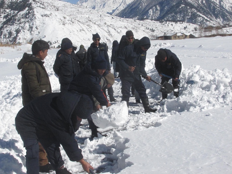 विमानस्थलको हिउँ नेपाल प्रहरी, सशस्त्र प्रहरी बल र एयरलाइन्सका कर्मचारीले पन्छाइरहेको जिल्ला प्रहरी कार्यालयका प्रहरी नायब उपरीक्षक रवीन श्रेष्ठले बताए । बाक्लो हिउँका कारण जिल्ला बाहिर जोड्ने एकमात्र हवाई सेवा सञ्चालन नहुँदा पाँच दिनदेखि यात्रुले आवतजावत गर्न पाएका छैनन् ।