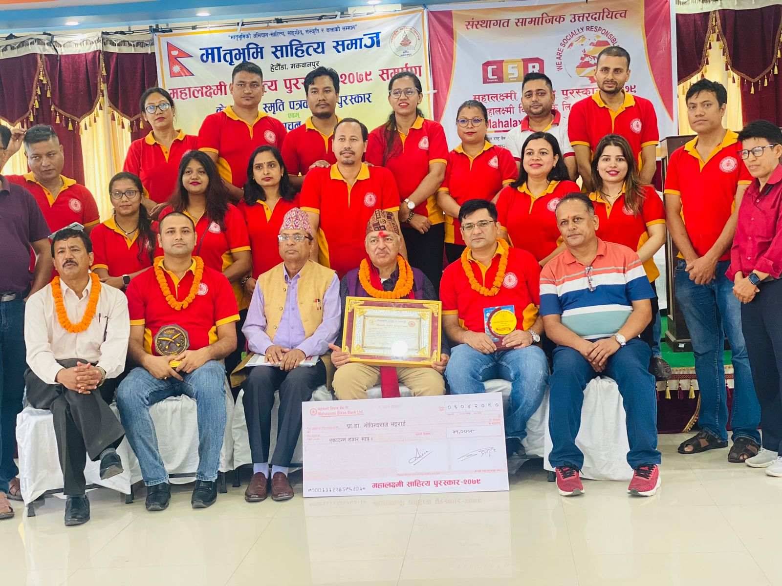 काठमाडौं । महालक्ष्मी विकास बैंकको हेटौंडा शाखाले संस्थागत सामाजिक उत्तरदायित्व कार्यक्रम अन्तरर्गत मातृभुमी साहित्य समाजसँग समन्वय गरी वार्षिक रुपमा प्रदान गर्दै आइरहेको महालक्ष्मी साहित्य पुरस्कार–२०७९ द्वारा प्रा. डा. गोविन्दराज भट्टराईलाई सम्मानित गरेको छ ।