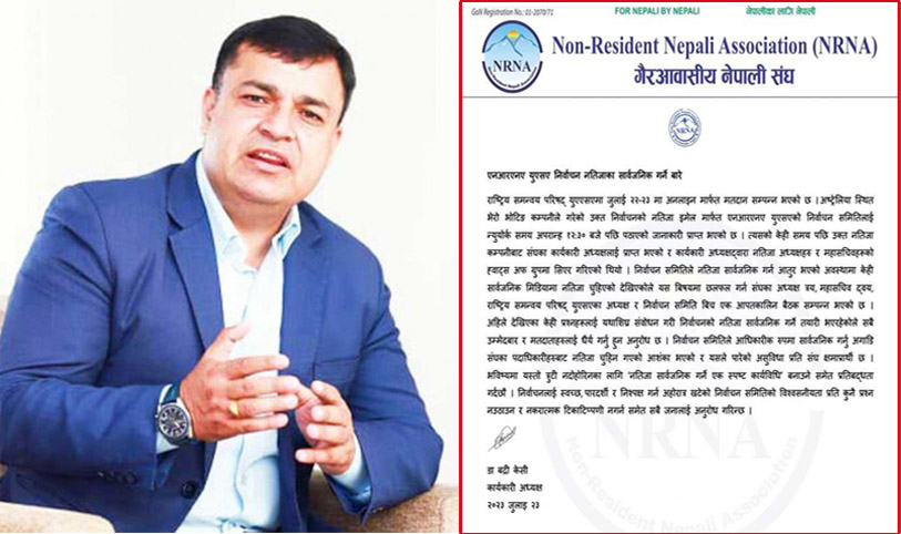काठमाडौं । गैरआवसीय नेपाली संघ (एनआरएनए) अमेरिकाको चुनावमा कार्यकारी अध्यक्ष डा. बद्री केसीले गम्भीर गल्ती गरेका छन् । चुनावमा केसीले निर्वाचन समितिलाई जानकारी नदिएरै पहिलै सार्वजनिक गरेर गम्भीर गल्ती गरेका हुन् ।