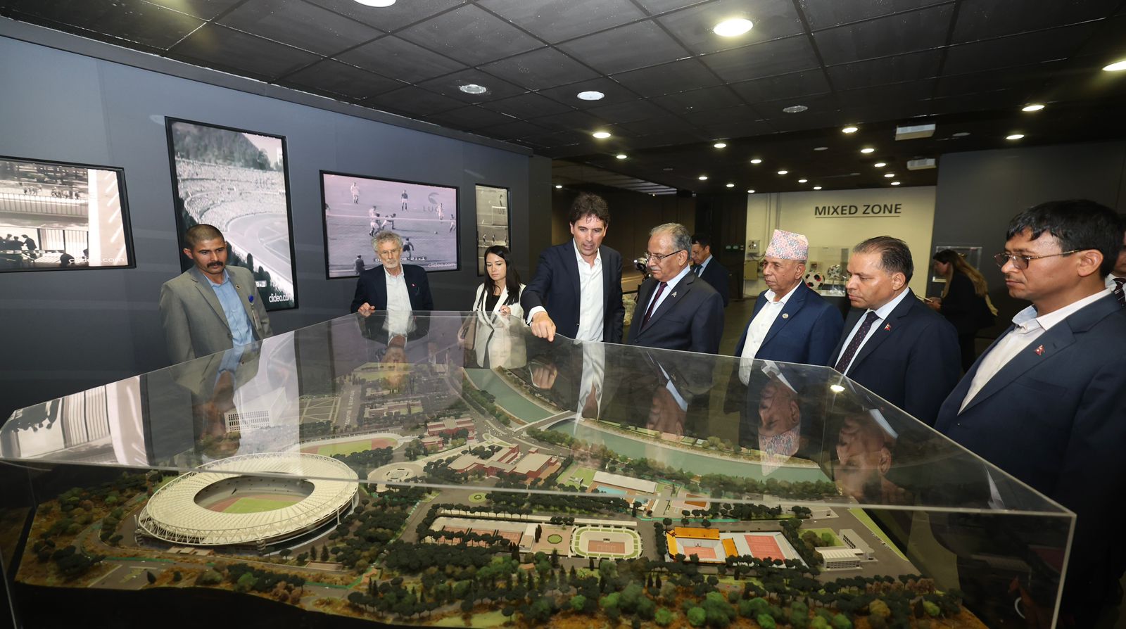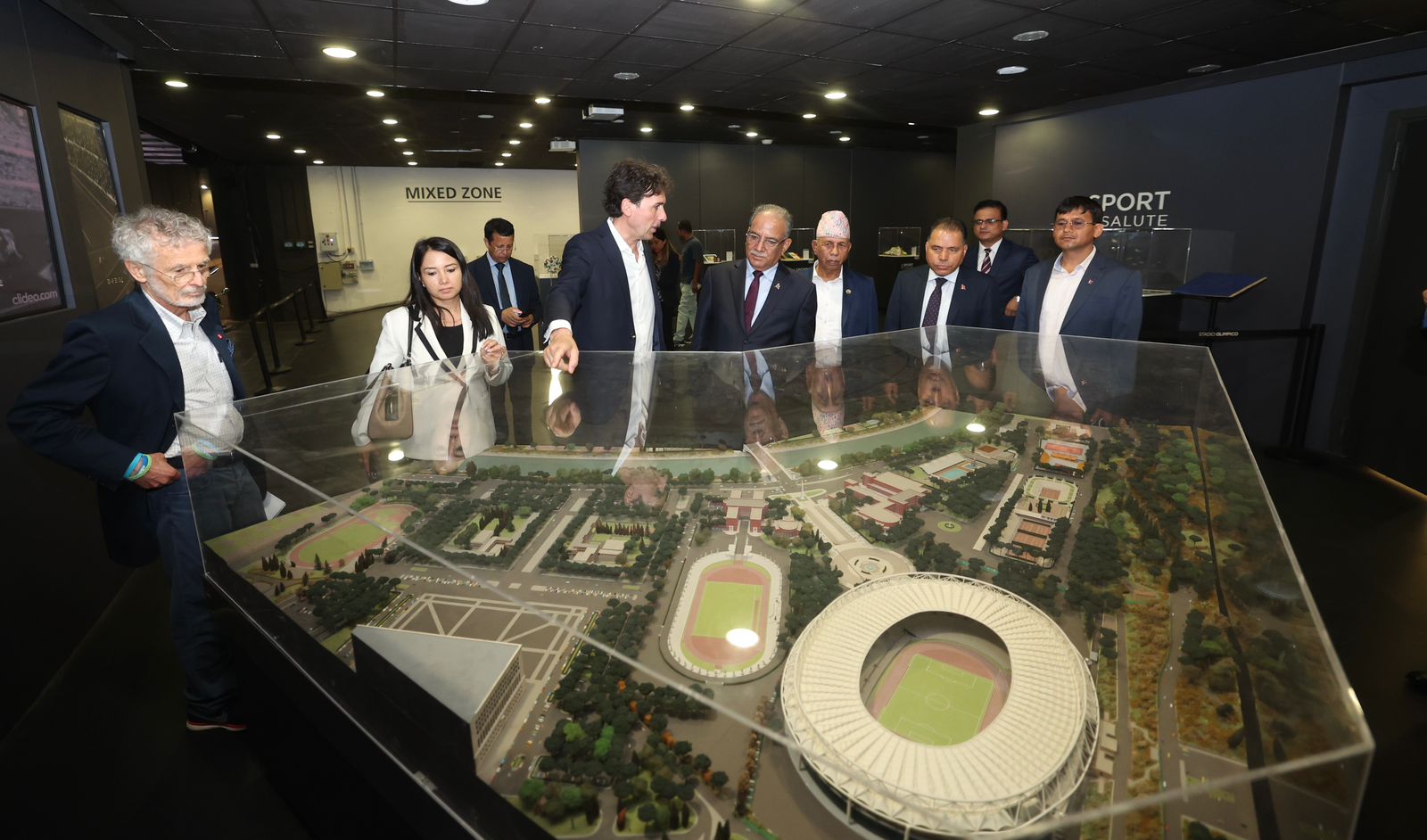 उनले रङ्गशालामा प्रदर्शनीमा राखिएको इटालीले प्राप्त गरेको पहिलो शिल्ड, खेलाडीका जर्सीलगायतको अवलोकन गरेका थिए ।