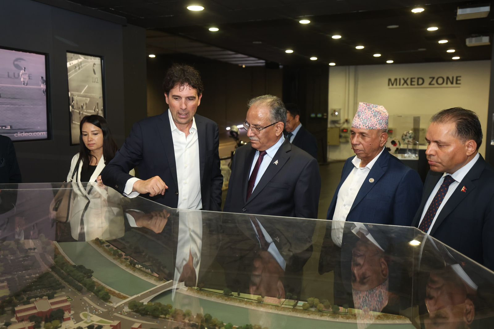उनले रङ्गशालामा प्रदर्शनीमा राखिएको इटालीले प्राप्त गरेको पहिलो शिल्ड, खेलाडीका जर्सीलगायतको अवलोकन गरेका थिए ।