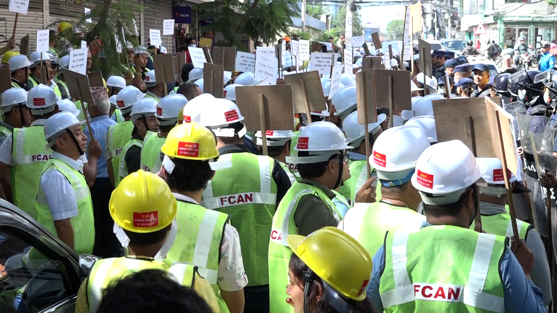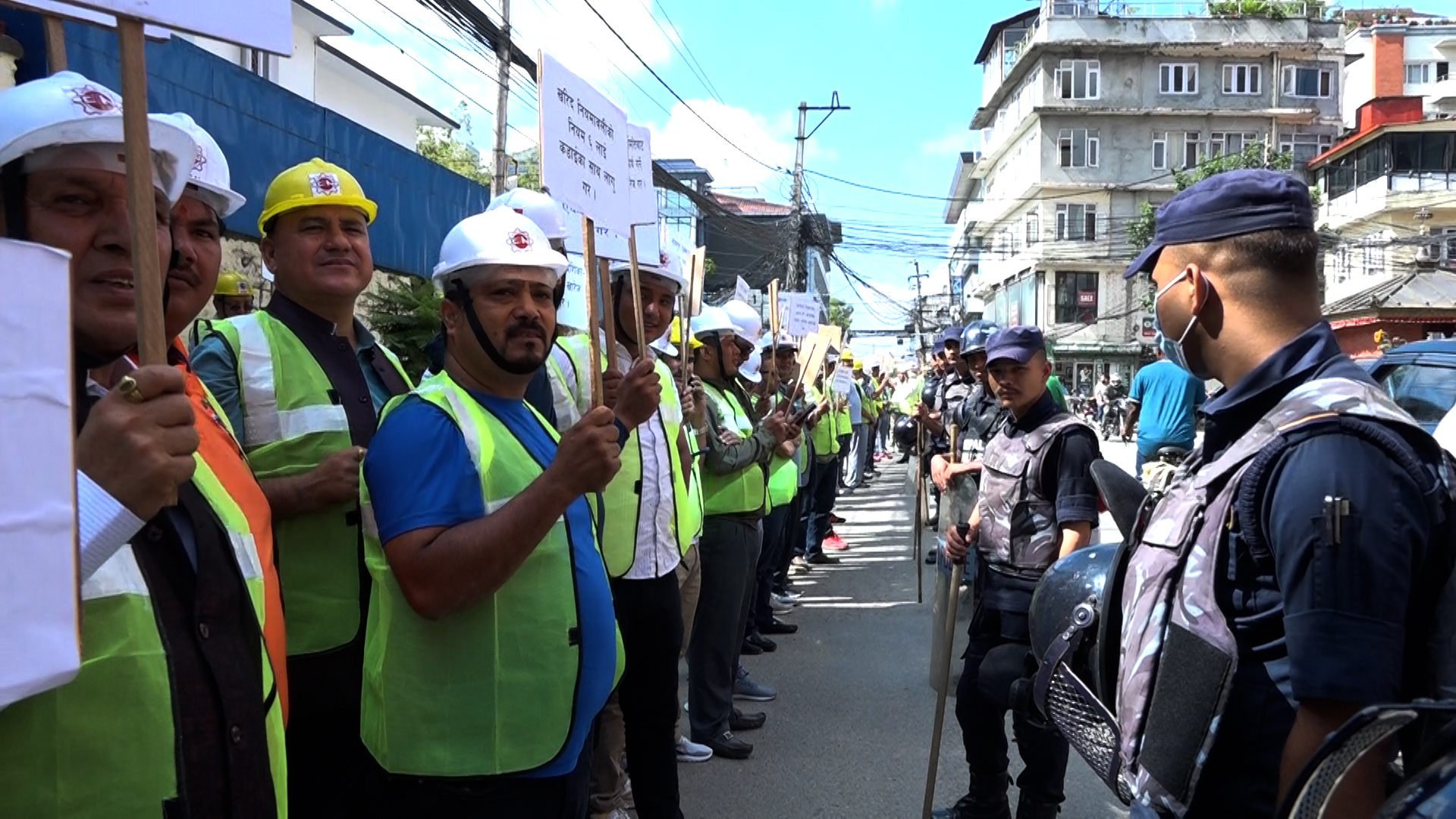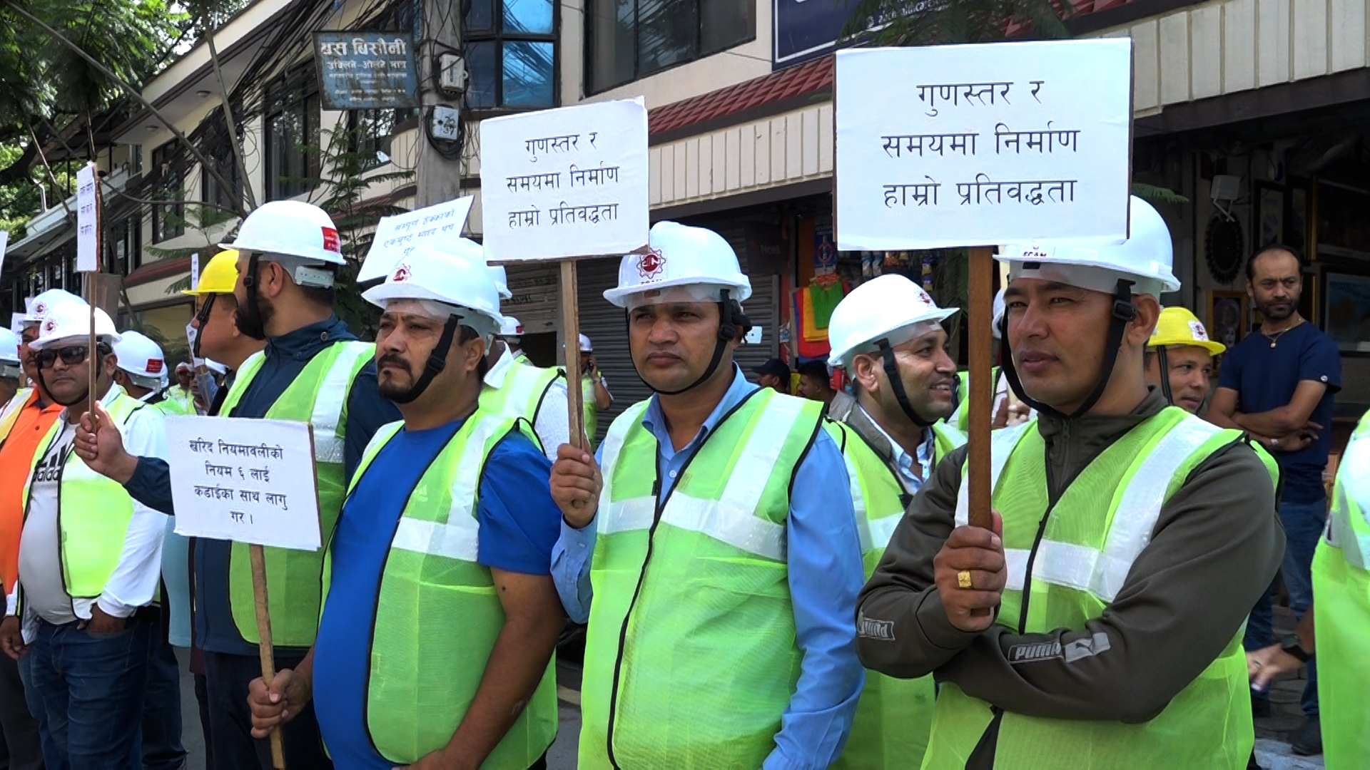 रकम भुक्तान माग र म्याद थप सम्बन्धी निर्णयको विरोधमा व्यवसायीहरू सेफ्टी हेल्मेटसहित एक घण्टा धर्नामा सहभागि भए । यसअघि माइतीघर मण्डलासहितका स्थानमा धर्नामा बसेका उनीहरुले व्यवसायीले विभिन्न समस्या झेल्नुपरिरहेको गुनासो गरेका छन् ।