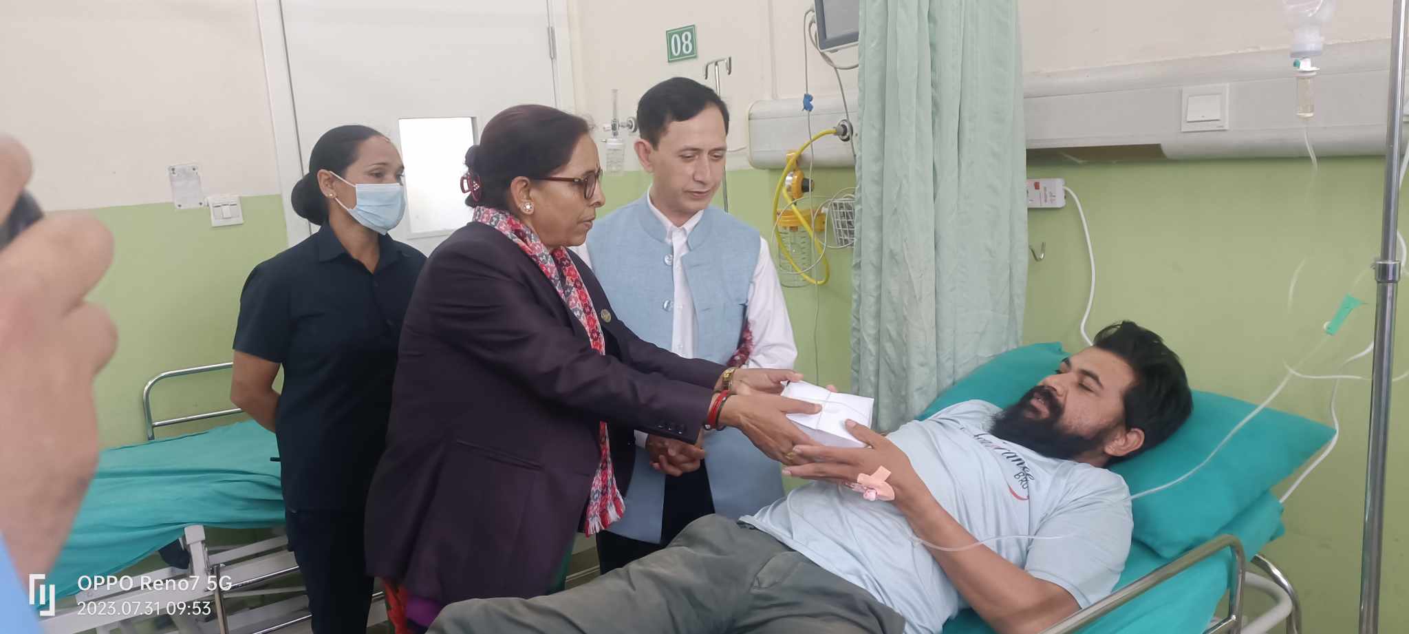 एकीकृत सरकारी कर्मचारी संगठन, नेपाल,भौतिक पूर्वाधार तथा यातायात मन्त्रालय विभागीय कार्यसमितिको आयोजनामा निजामति आन्दोलनका सहिदहरु मनोज जोशी, झपेन्द्र कार्की तथा सुरेन्द्र बिकको स्मृति दिवसको अवसरमा राज्यमन्त्री चपाईले सिभिल अस्पतालको सभाहलमा बिरामीलाई फलफुल वितरण गरेकी हुन् ।