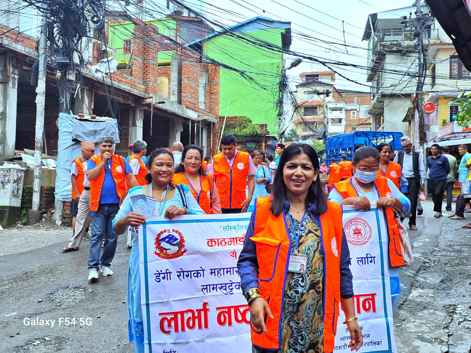 एकै पटक सबै वडामा डेङ्गी रोग फैलाउने लामखुट्टेका लार्भा नष्ट गर्दै काठमाडौं महानगर