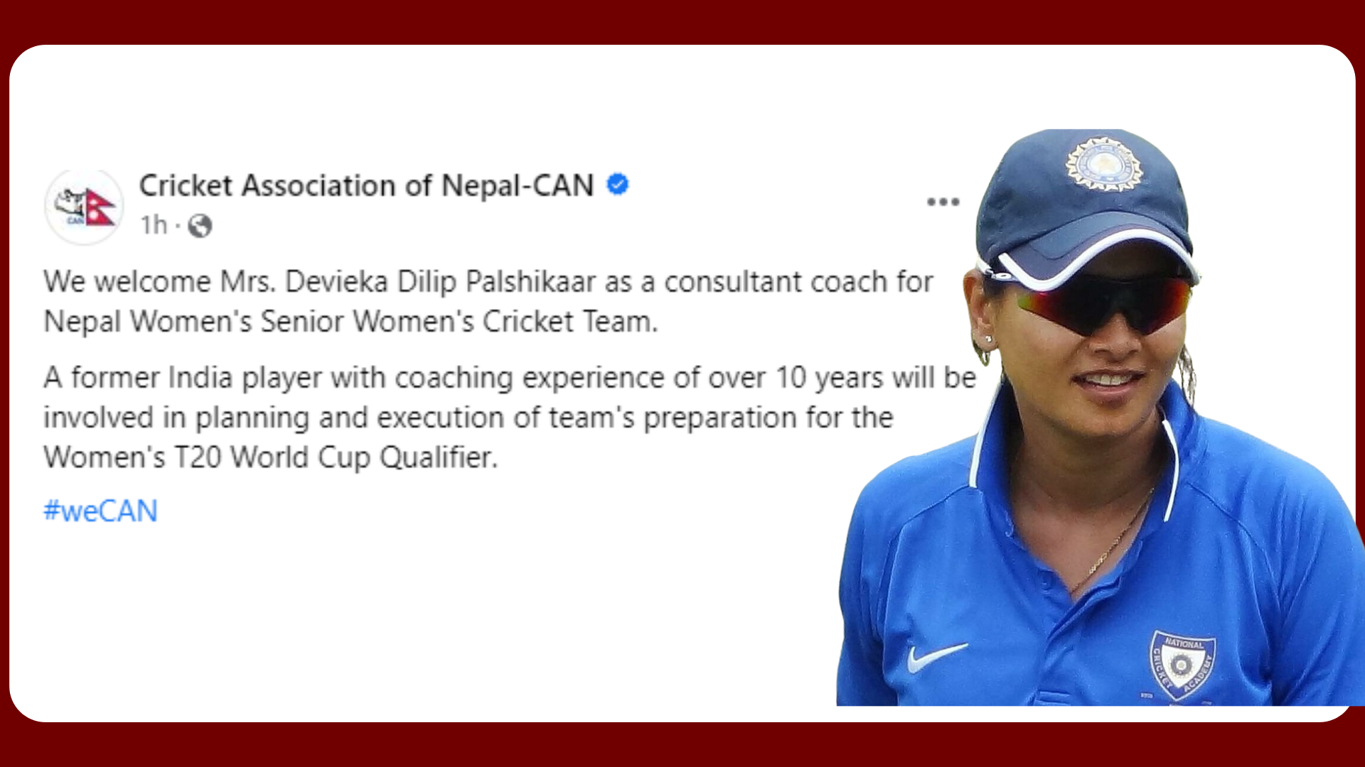 काठमाडौं । भारतीय पूर्व क्रिकेटर देविका पाल्शिकर नेपाली महिला क्रिकेट टिमको ब्याटिङ प्रशिक्षकमा नियुक्त भएकी छन् । आइतबार नेपाल क्रिकेट संघ (क्यान)ले नेपाली महिला क्रिकेट टिमका लागि पहिलो महिला प्रशिक्षक ल्याएको जानकारी गराएको हो ।