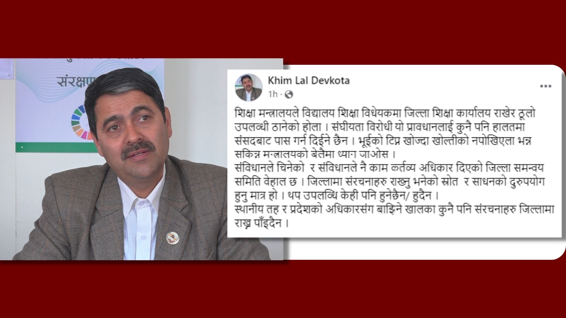 जिल्ला शिक्षा कार्यालय राख्ने संघीयता विरोधी प्रावधान पास हुन दिदैनौं : सांसद देवकोटा