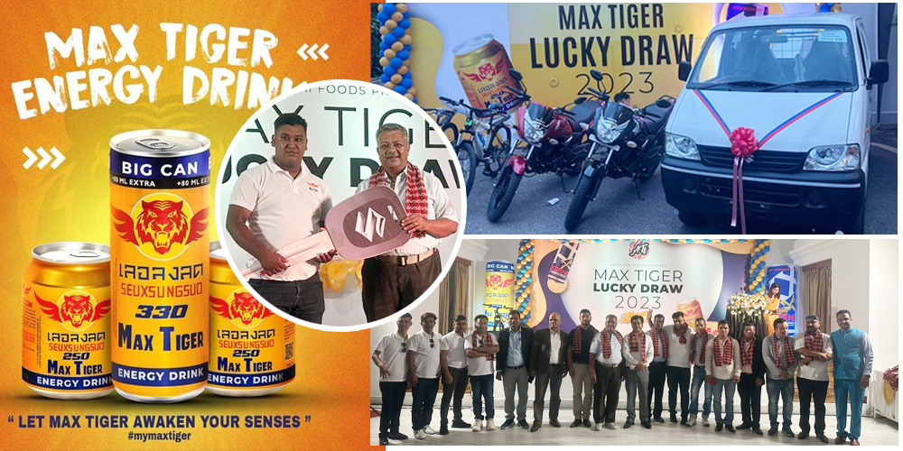 काठमाडौं । नेपालमा अत्यधिक बिक्री हुने इनर्जी ड्रिङ्क्स म्याक्स टाइगरले ‘लक्की ड्र’ कार्यक्रम सम्पन्न गरेको छ ।