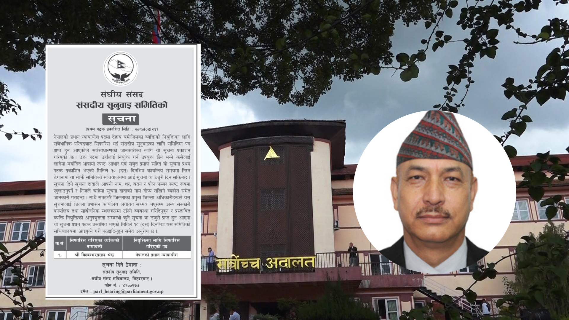 सूचना दिने सूचना दाताले आफ्नो नाम, थर, वतन र फोन नम्बर स्पष्ट रूपमा खुलाउनुपर्ने र निजले चाहेमा सूचना दाताको नाम गोप्य राखिने पनि सूचनामा उल्लेख छ । संवैधानिक परिषद्ले साउन १८ गते बसेको बैठकले श्रेष्ठलाई प्रधानन्यायाधीश नियुक्तिका लागि सिफारिस गरेको थियो ।