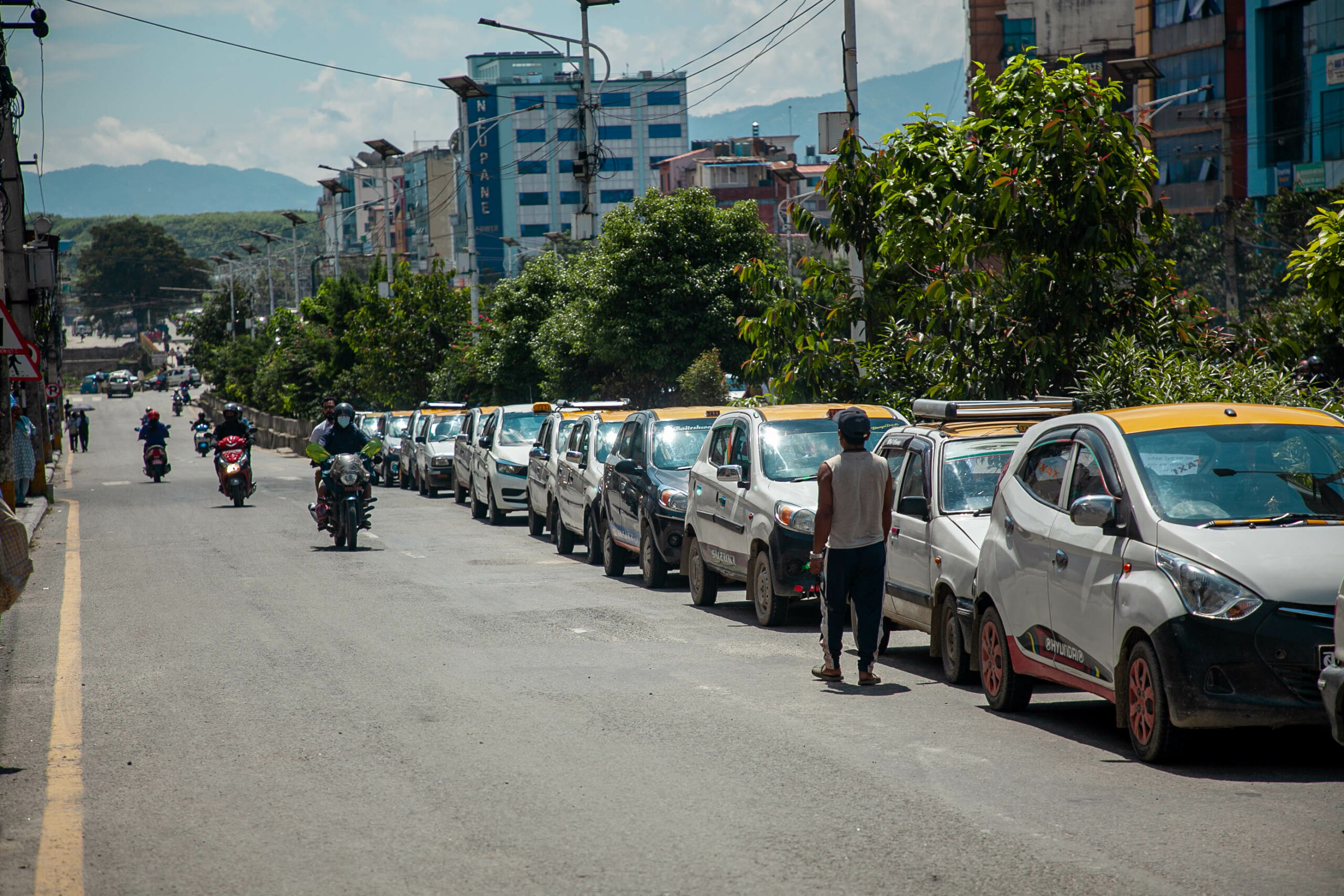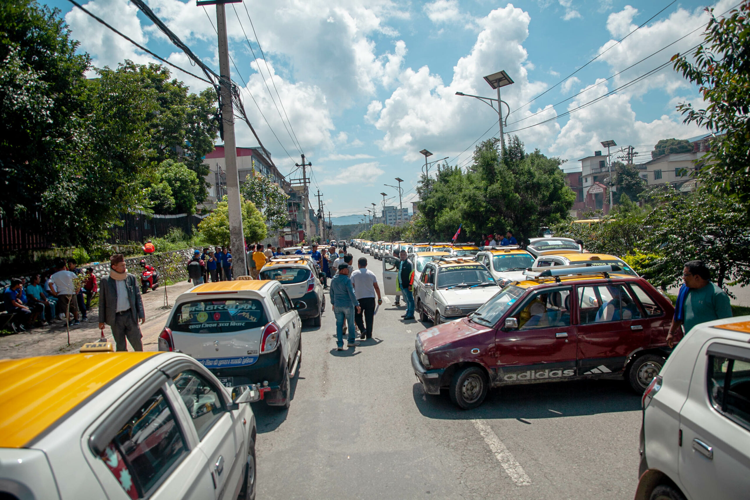 बिहीबार काठमाडौंको नयाँ बानेश्वर यातायात व्यवस्था विभाग अगाडि ५० भन्दा बढी ट्याक्सी तेस्र्याएर विरोध गरेका हुन् ।