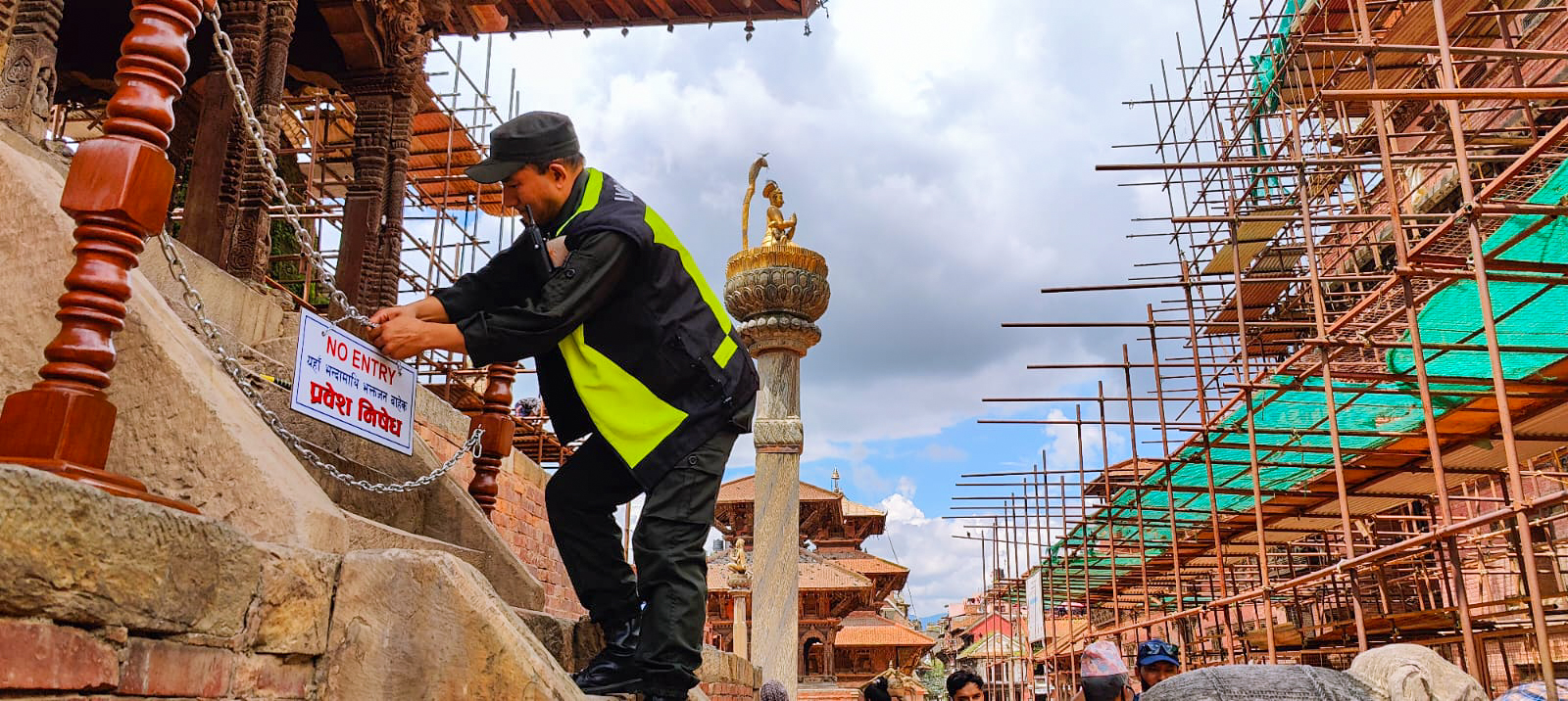 पाटन दरबार स्क्वायरमा नगरप्रहरीको सक्रियता : मन्दिरक्षेत्रमा अवान्छित क्रियाकलाप प्रतिवन्ध
