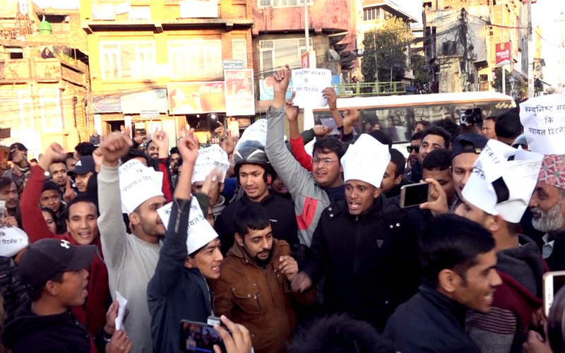 सर्वसाधारण, राजनितिज्ञ, पत्रकार, वुद्धिजिविको सहभागिता रहेको विरोध प्रर्दशनमा कम्युनिष्ट सरकार कि पञ्चायत रिर्टन्स ? लेखिएको  प्लेकार्ड देखाइएको थियो ।