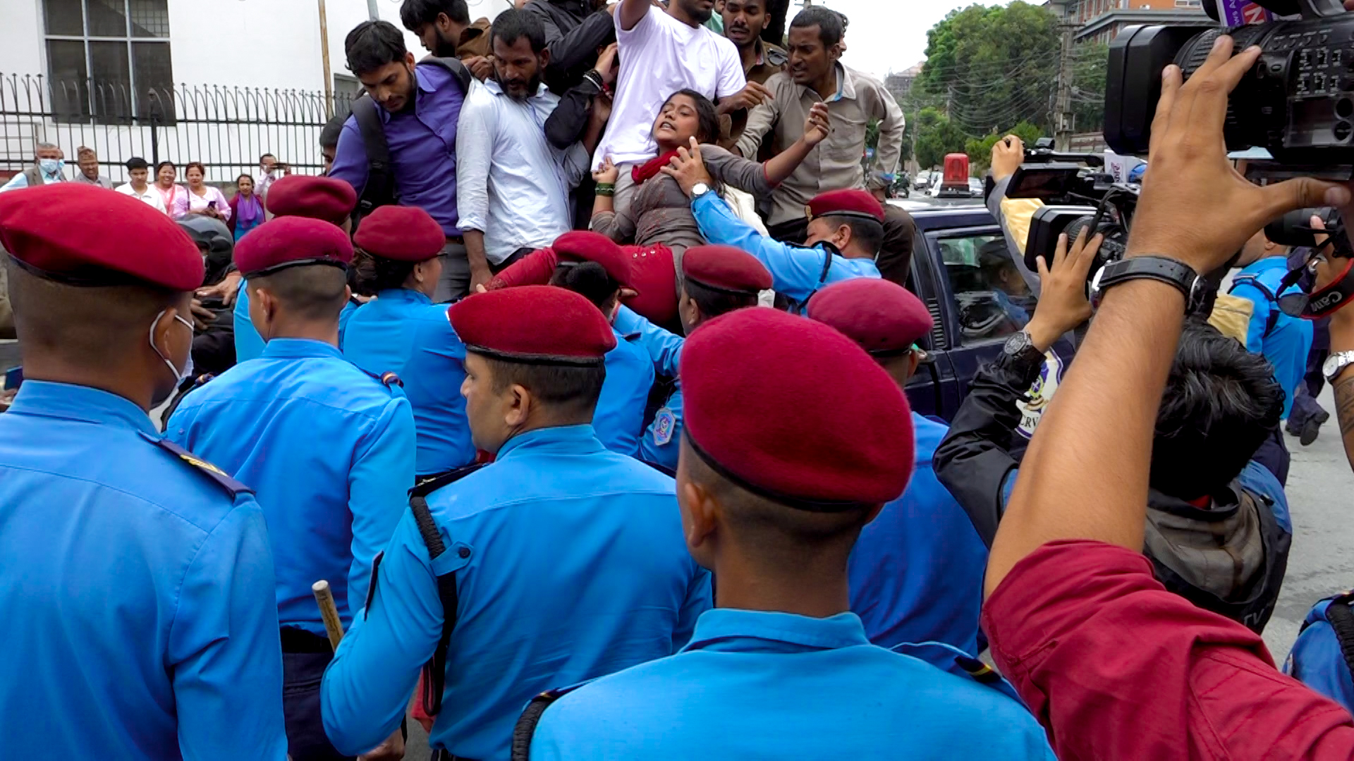 मृतक आरतीका लागि न्याय माग्दै सिंहदरबार दक्षिण गेट पुगेका पीडितका परिवार र आफन्तमाथि धरपकड गरेको प्रहरीले १८ जना पुरुष र २ जना महिलासहित २० जनालाई नियन्त्रणमा लिएको हो ।