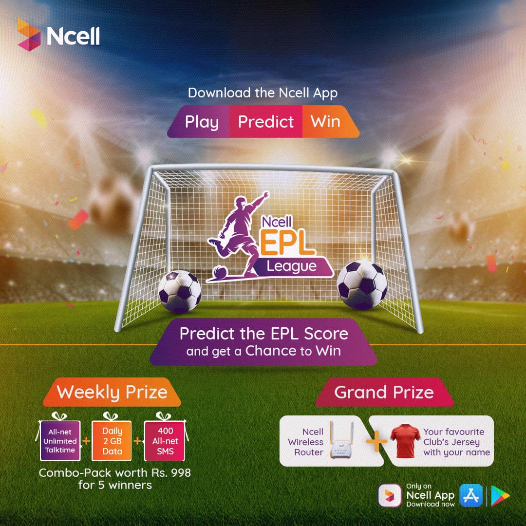 काठमाडौं । एनसेल आजियाटा लिमिटेडले हाल संचालनमा रहेको इङ्लिस प्रिमियर लिग (ईपीएल) २०२३/२४ को अवसरमा एनसेल एपमा ‘एनसेल ईपीएल लिग’ प्रतियोगिता सुरु गरेको छ ।
