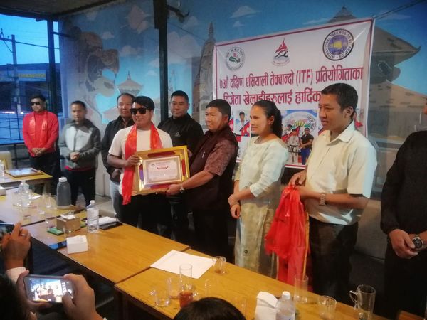 भारतको हैदराबादमा सम्पन्न सातौँ दक्षिण एसियाली आईटीएफ तेक्वान्दो प्रतियोगितामा खाँडादेवी गाउँपालिकाका स्वर्ण पदक विजेता निर्मल लामा, सुनापतिकी स्वर्ण विजेता विनीता थापा मगर, रजत विजेता रोशन घिसिङ,अनिल खड्का र शाहिद दोङलाई गाउँपालिकाले बुधबार स्वागत तथा सम्मान गरेको हो ।
