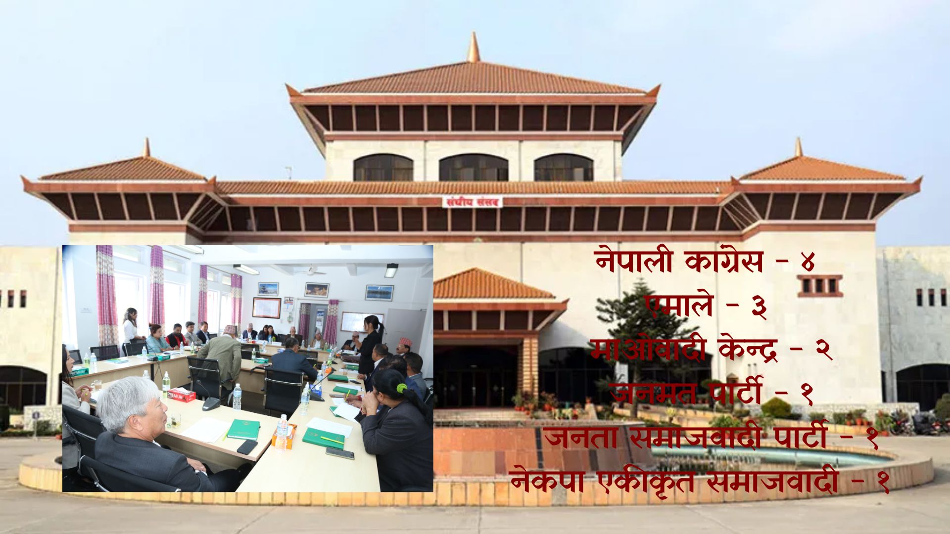 त्यस्तै, सरकारको नेतृत्व गरेको माओवादी केन्द्रले २, नेकपा एकीकृत समाजवादी, जनता समाजवादी पार्टी र जनमत पार्टीले एक÷एक समितिको नेतृत्व गर्ने सहमति गरेका छन् । जसअनुसार कांग्रेसले राज्य व्यवस्था तथा सुशासन समिति, अर्थ समिति, कृषि सहकारी तथा प्राकृतिक स्रोत समितिको सभापतिका लागि उम्मेदवारी दिनेछ ।