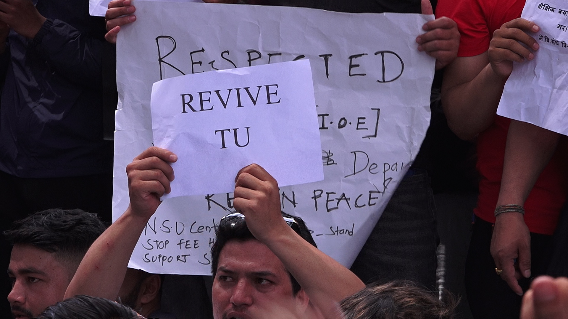 प्रदर्शनमा नेपाल विद्यार्थी संघका अध्यक्ष दुजाङ शेर्पाले विश्वविद्यालयहरु धरापमा परेको बताएका छन् ।