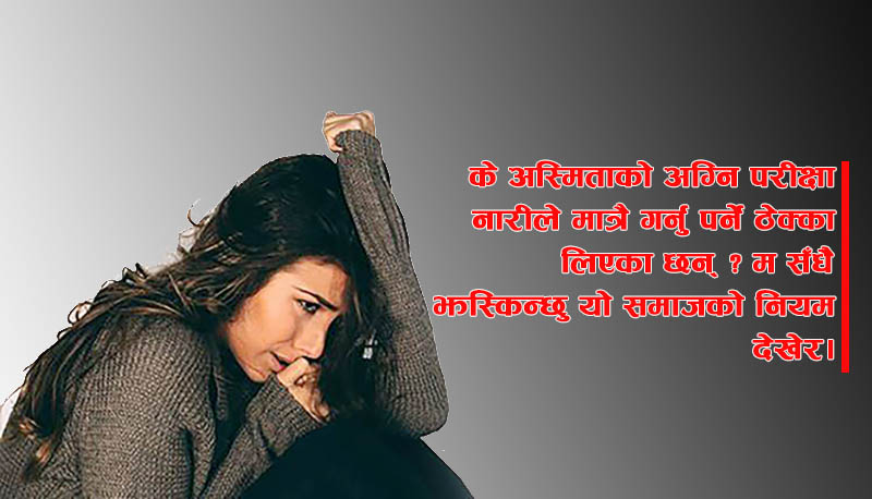 यो पुरुष प्रधान समाजले सधै नारीको अस्मितालाई नै तराजुमा राखेर किन जोख्न खोज्छ ? के अस्मिताको अग्नि परीक्षा नारीले मात्रै गर्नु पर्ने ठेक्का लिएका छन् ? म सधै झस्किन्छु यो समाजको नियम देखेर । के नारीले मात्र समाजको कठघरमा उभिनु पर्छ ? यो प्रश्न आम नेपाली नारीको हो ।