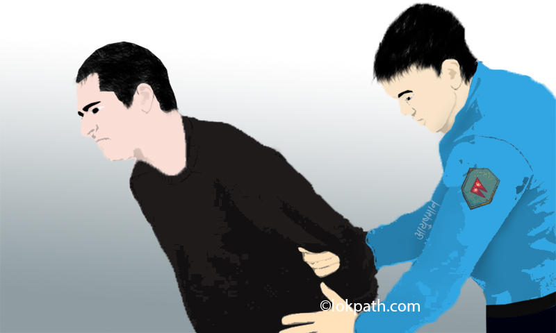 प्रहरीले यही ११ गते २१:०० बजे काठमाडौं महानगरपालिका १ नागपोखरी स्थित बा. ४१ प. ५६१५ नम्बरको मोटरसाईकललाई चेकजाँच गर्दा धुम्बाराही बस्ने रौतहटका सुरेन्द्र पासवानले प्रहरी टोलीलाई ५ सय घुस दिएकाले निजलाई घुस रकम सहित नियन्त्रणमा लिएको छ ।