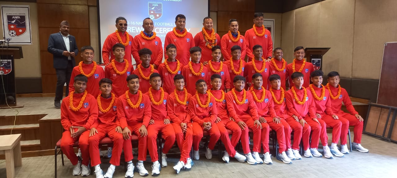 बुधबार एन्फा कम्प्लेक्स सातदोबाटोमा एक कार्यक्रमको आयोजना गरी एन्फा अध्यक्ष पंकज विक्रम नेम्वाङले यू १६ राष्ट्रिय फुटबल टोलीलाई जितको शुभकामना दिदै विदाई गरे । टोलीमा २३ जना खेलाडी,प्रशिक्षक,हेड कोच,फिजिसियन,असिस्टेन्ट कोच लगायत कूल ३० सामेल रहेका छन् ।