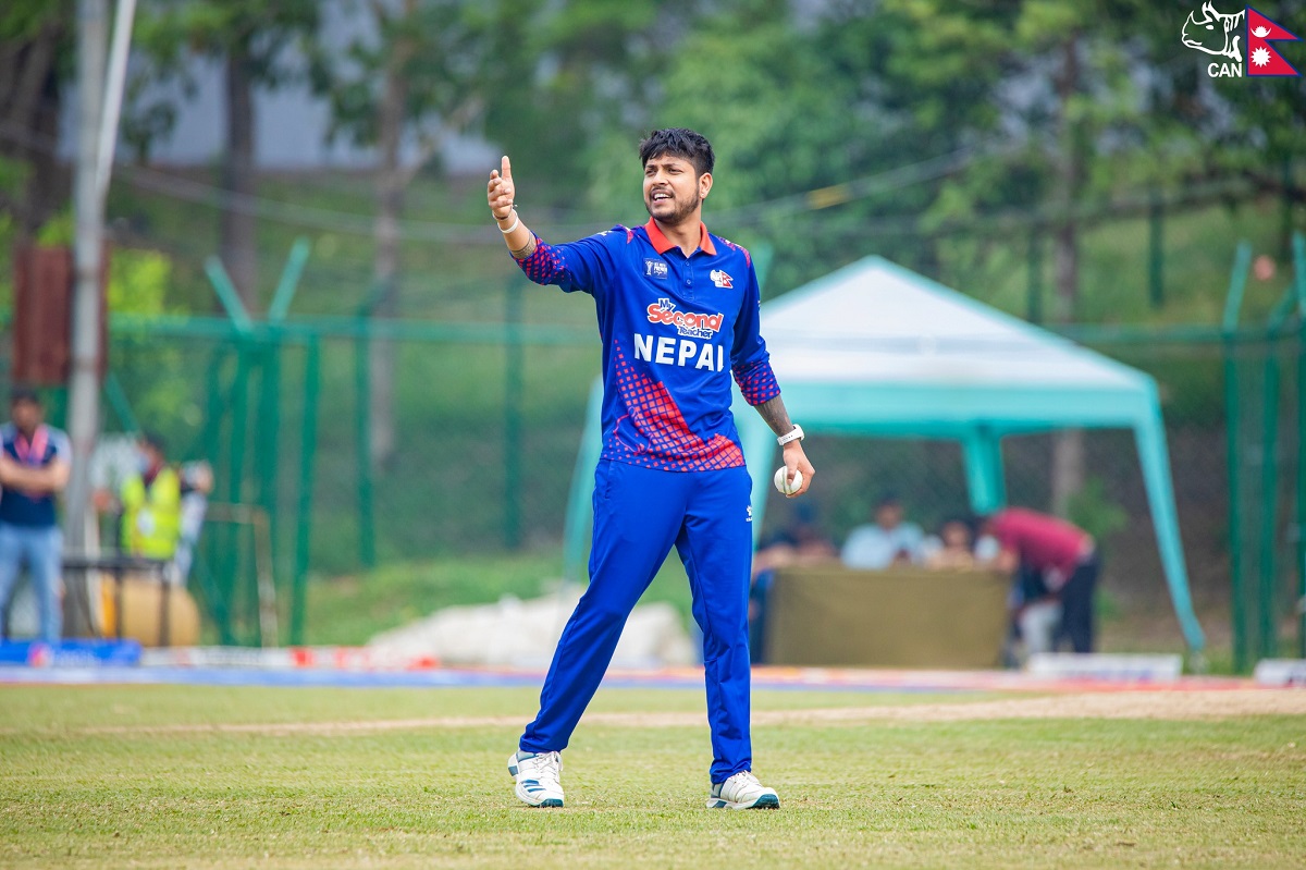 नेपालका बलर सन्दीप लामिछनोले पाकिस्तानका आगा सलमानलाई आउट गरेका हुन् ।