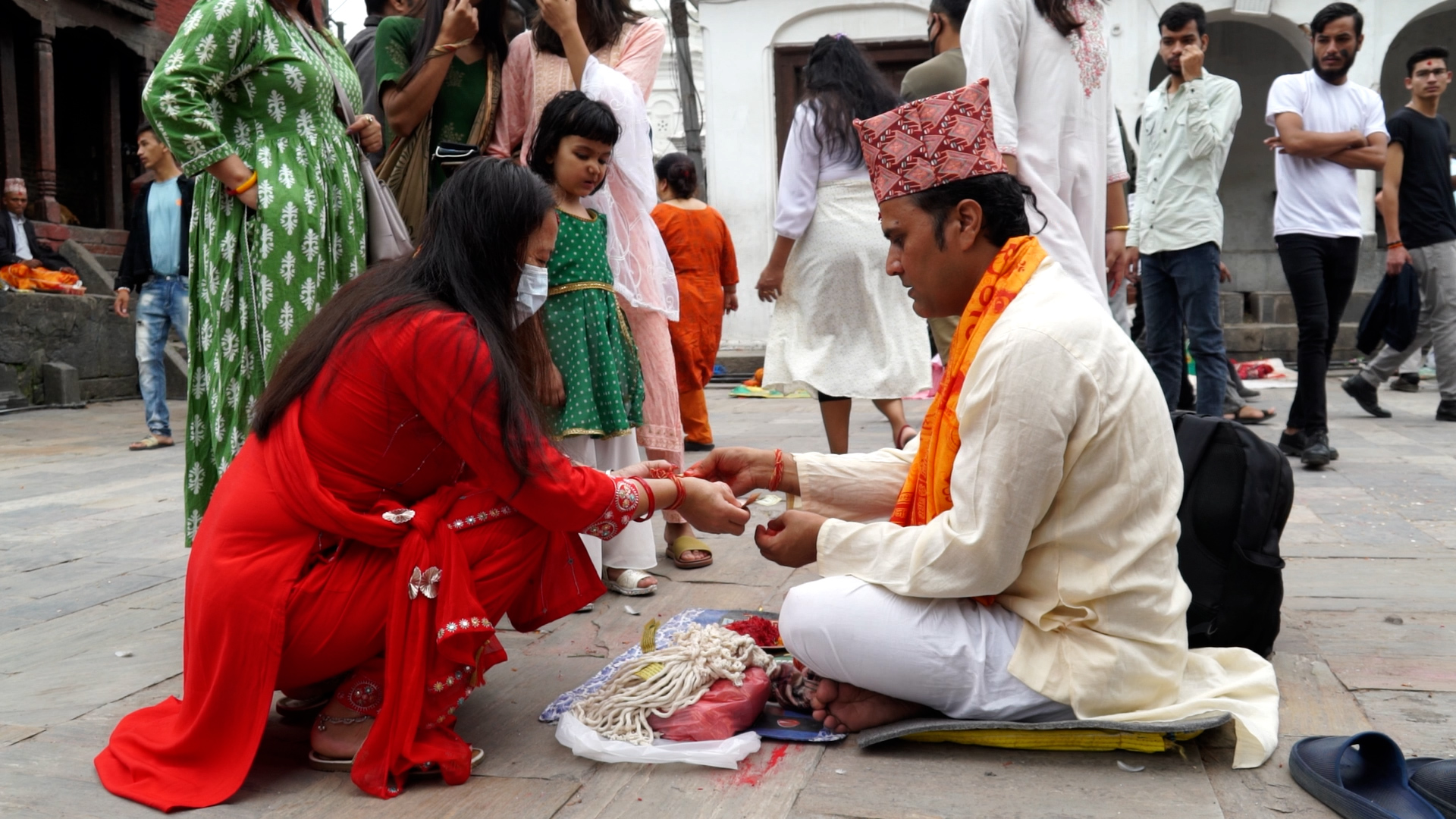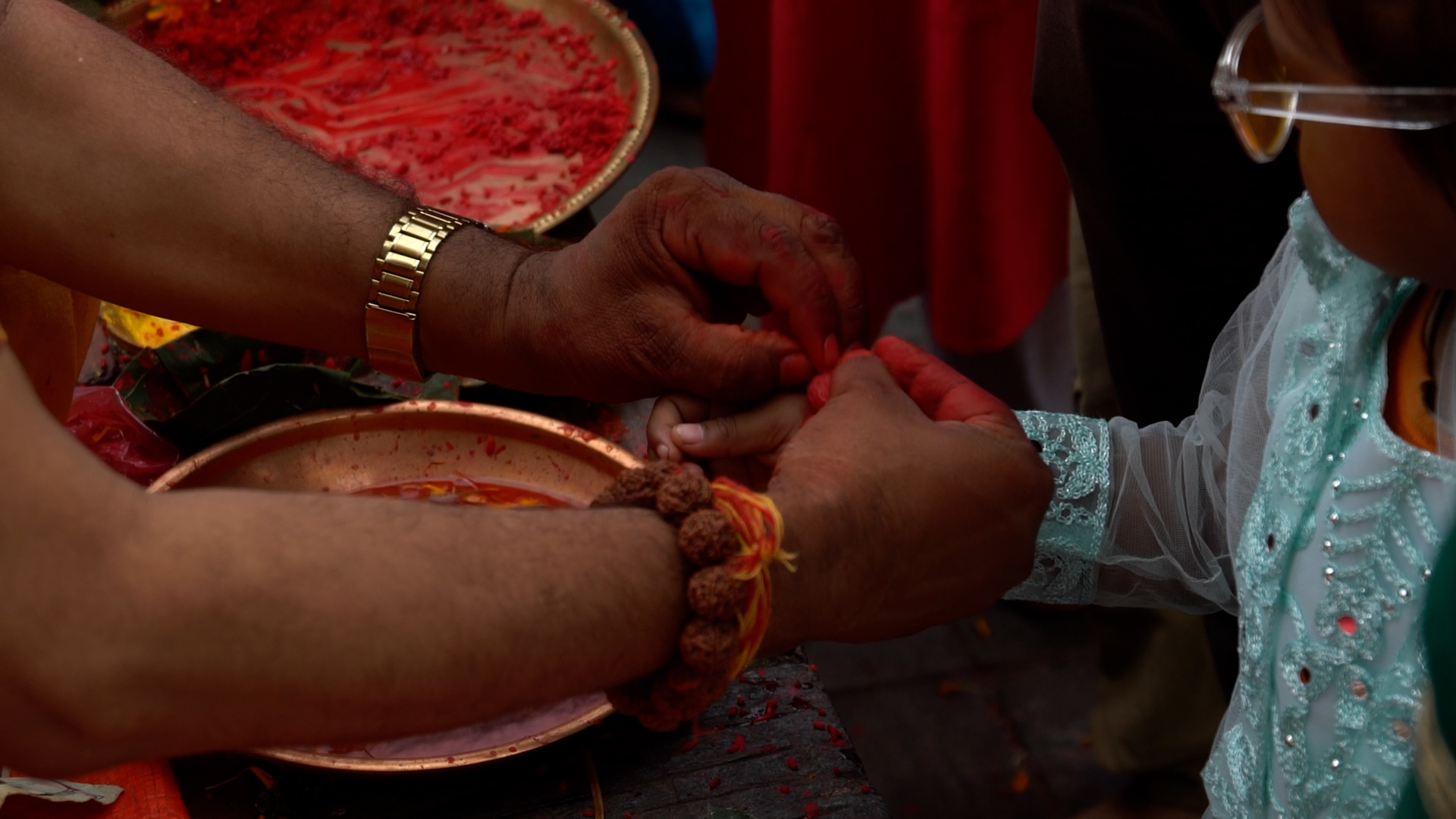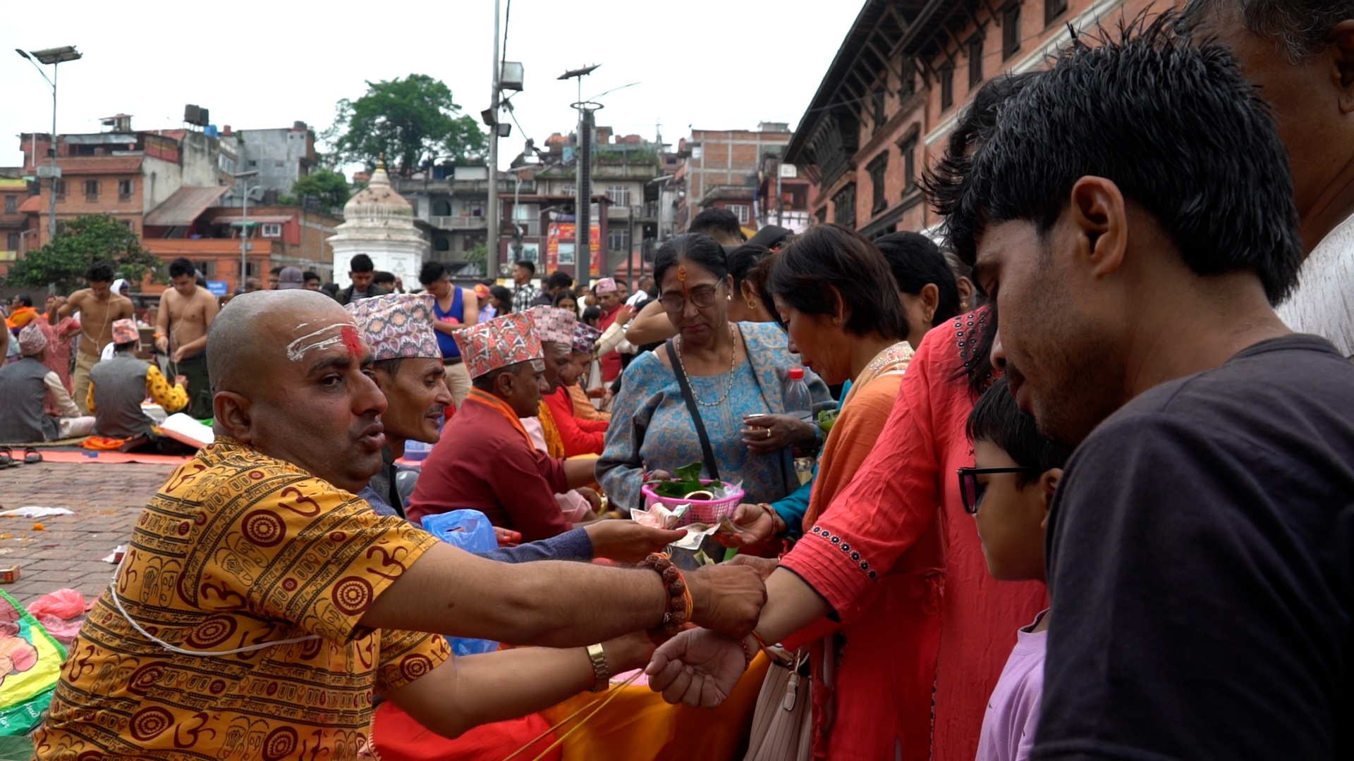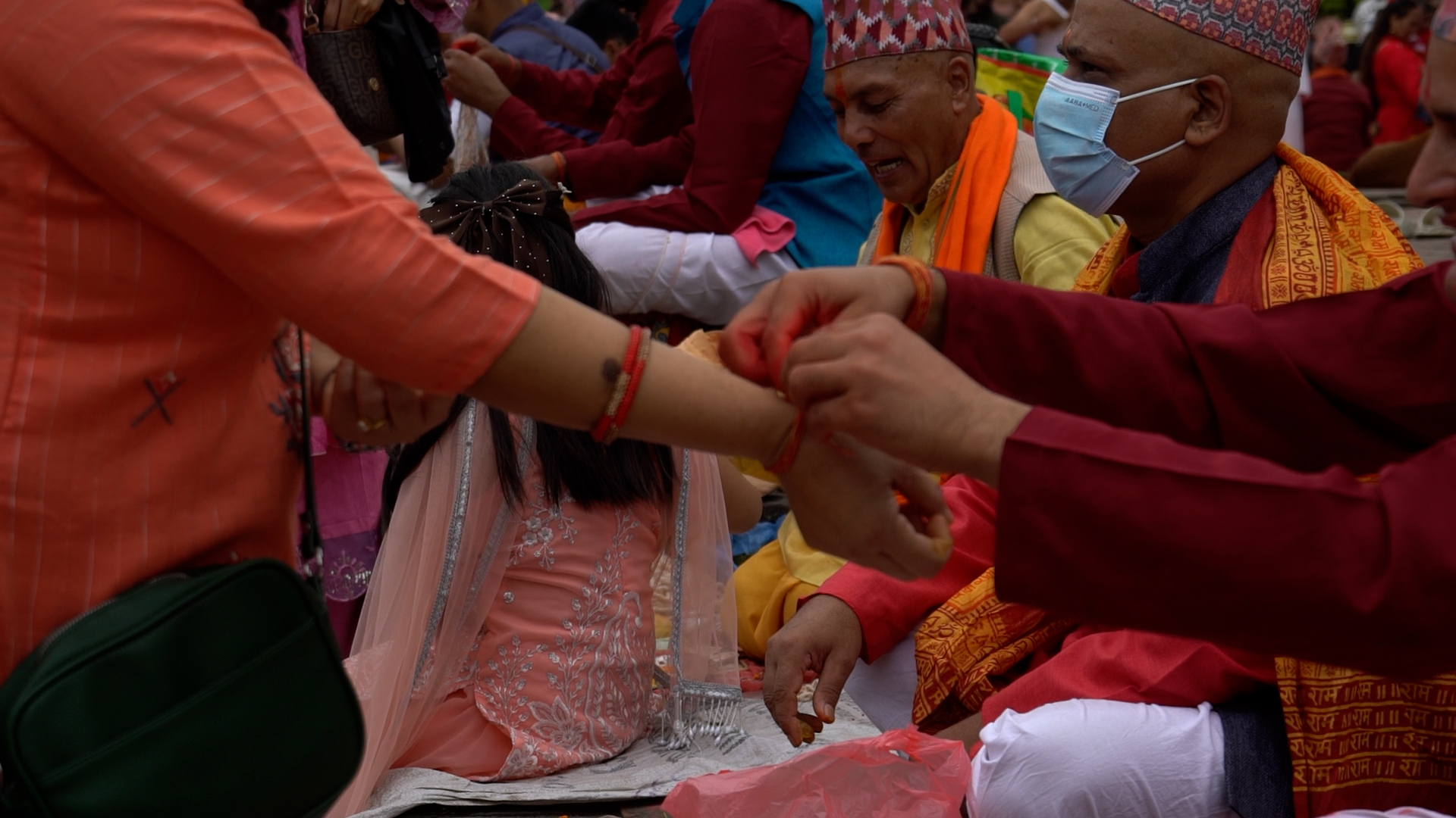 मानव रक्षाका लागि जप, तप र पूजा गरी मन्त्रिएको रक्षाबन्धन अर्थात् डोरो वैदिक परम्पराको मन्त्रोच्चारण गर्दै पुरोहितले दाहिने नाडीमा बाँधिदिने परम्परा रहेको छ ।