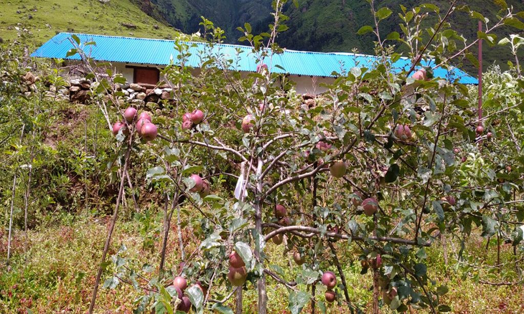पाल्पामा उत्पादन गरिँदै आएको स्याउको बिरुवा खरिद गरी यहाँका कृषकलाई वितरण गरेको हो । निसीखोलामा दुई हजारदेखि चार हजार उचाईसम्म स्याउका बिरुवा लगाइने उनको भनाइ छ । निसेलढोर चार हजार मिटरभन्दा बढीको उचाइमा छ भने, सिप, चोरबास, कोस्काँ लगायतका क्षेत्र भने २८ सय आसपासको उचाइमा पर्छन् ।