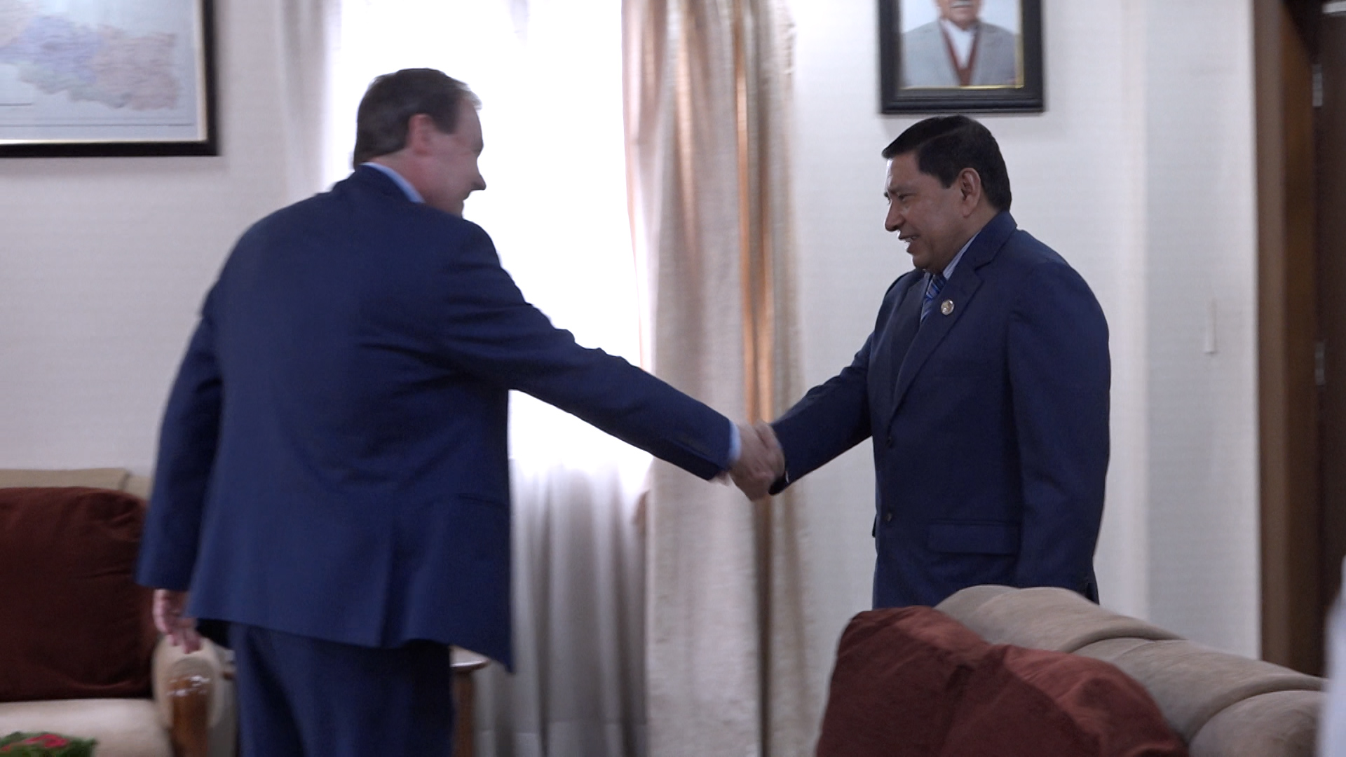 काठमाडौं । उपप्रधानमन्त्री एवं गृहमन्त्री नारायणकाजी श्रेष्ठसँग नेपालका लागि बेलायती राजदूत रोब फेनले भेटवार्ता गरेका छन् । गृहमन्त्रायमा भएको भेटवार्तामा नेपाल–बेलायत सहकार्यलगायत आपसी हितका विविध विषयमा छलफल भएको हो ।