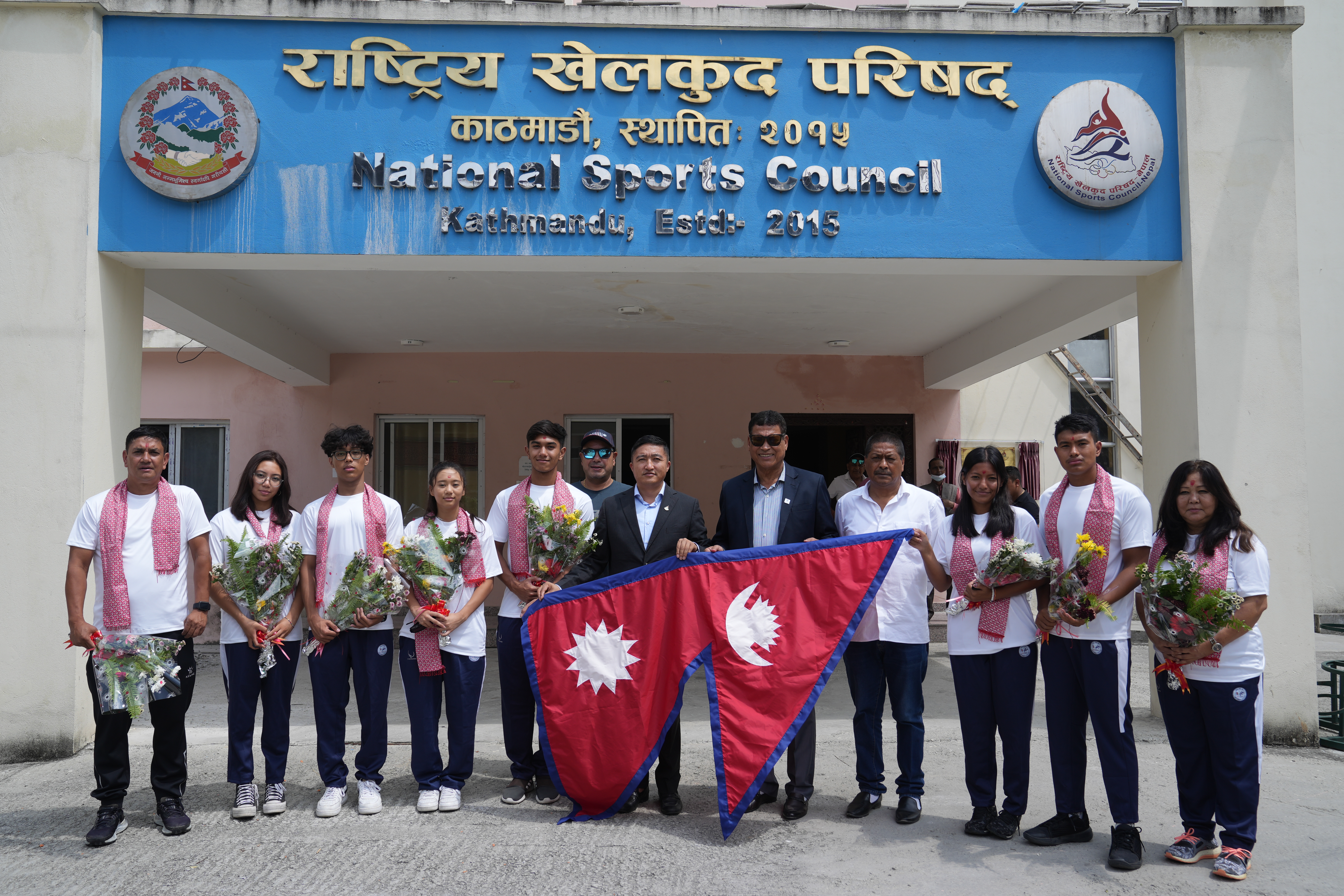काठमाडौं । इजरायलको नेतन्यामा आयोजना हुने वल्र्ड अक्वाटिक वल्र्ड जुनियर स्विमिङ्ग च्याम्पियनसिप २०२३ मा नेपाली टोली पनि सहभागी हुने भएको छ । च्याम्पियनसिपमा सहभागी हुने नेपाली पौडी टोलीलाई आज राष्ट्रिय खेलकुद परिषद्का सदस्य सचिव टंकलाल घिसिङ्गले शुभकामना सहित बिदाई गरे ।