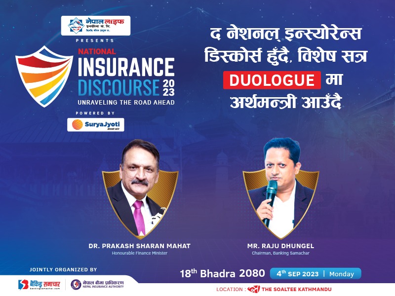 बीमा व्यवसाय शुरुवात भएको ५ दशकभन्दा लामो समय भइसकेको अवस्थामा पनि बीमा फाईदा नभई सुरक्षा हो भन्ने मुल शिक्षा जनमानसले बुझिरहेका छैनन्। कोभिड–१९ को संक्रमण, विगतमा आएको विनासकारी भूकम्पले बीमा नहुँदा सरकारकै ठुलो धनको क्षती हुन पुग्यो । फलस्वरूप आर्थिक मन्दीका कारण हाम्रो अर्थतन्त्रमा पनि प्रभावित भएको छ । यसै परिपेक्षलाई ध्यानकेन्द्रित गर्दै बैंकिङ्ग समाचारको अथक पहलबाट ‘द नेशनल इन्स्योरेन्स डिस्कोर्र्स ’ को आयोजना गर्न लागेको हो ।