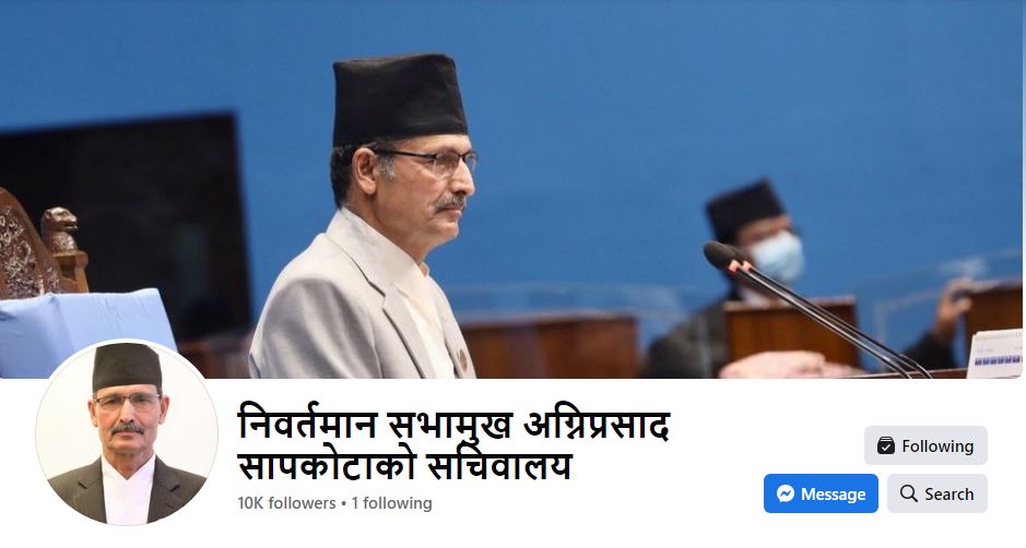 सापकोटा सभामुख हुँदा विभिन्न सामग्रीहरु प्रस्तुत गरिने आधिकारिक पेज ह्याक भएको हो ।
