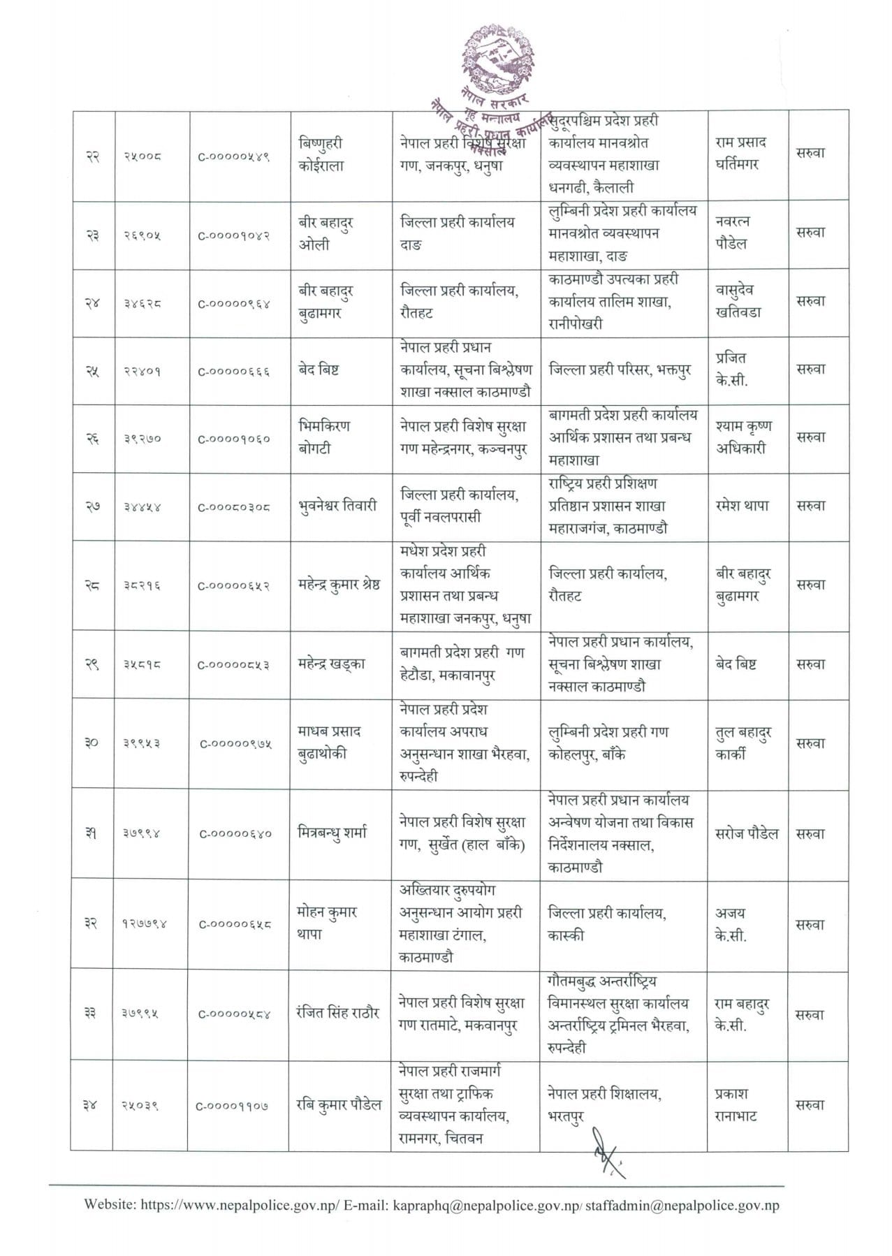 प्रहरी महानिरीक्षकको शुक्रबारको निर्णय अनुसार केही जिल्ला कार्यालयका प्रमुखसहित ठूलो संख्यामा एसपी र डीएसपीको सरुवा भएको हो ।