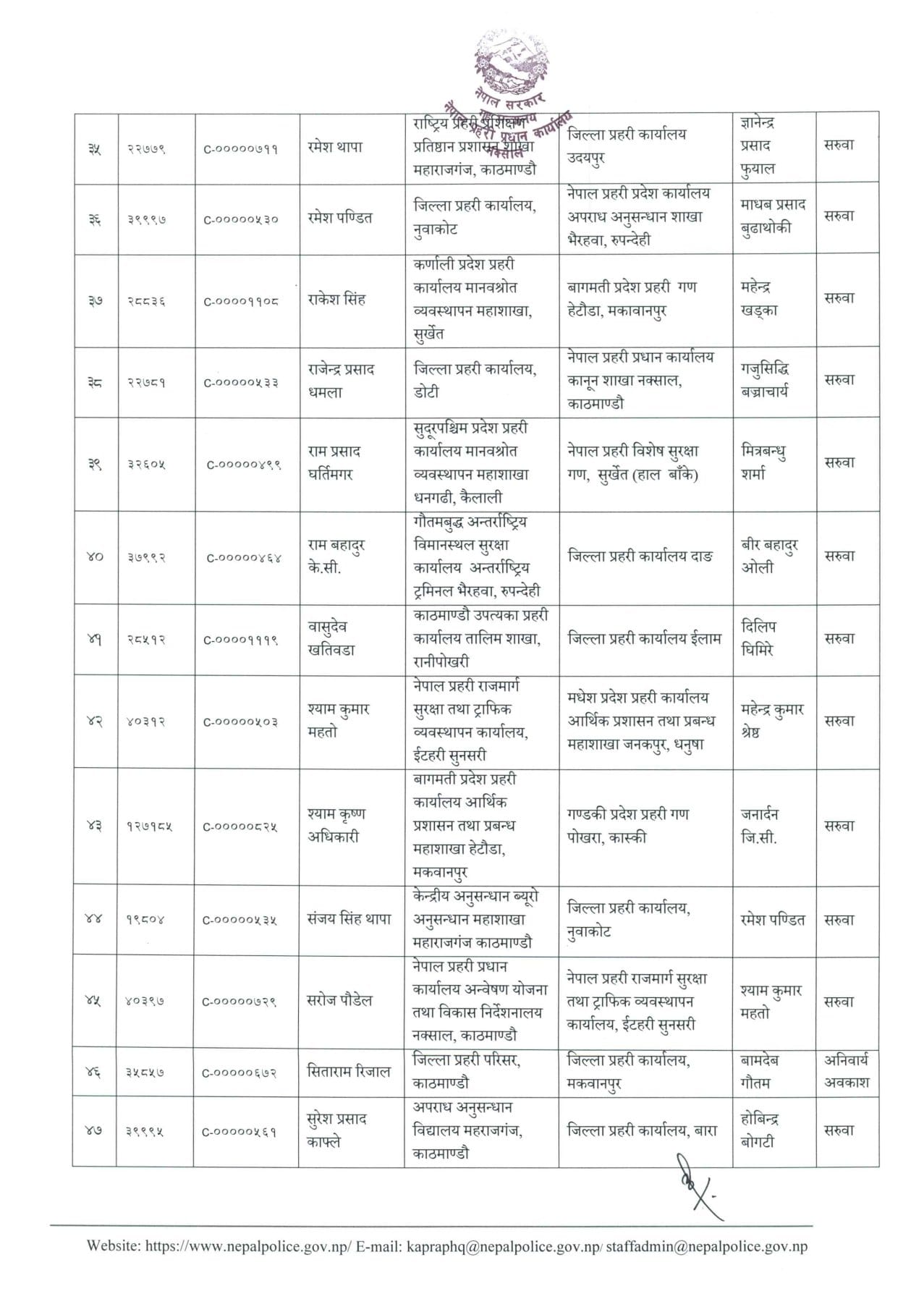काठमाडौं । नेपाल प्रहरीका ४८ प्रहरी उपरीक्षक (एसपी) को सरुवा भएको छ ।