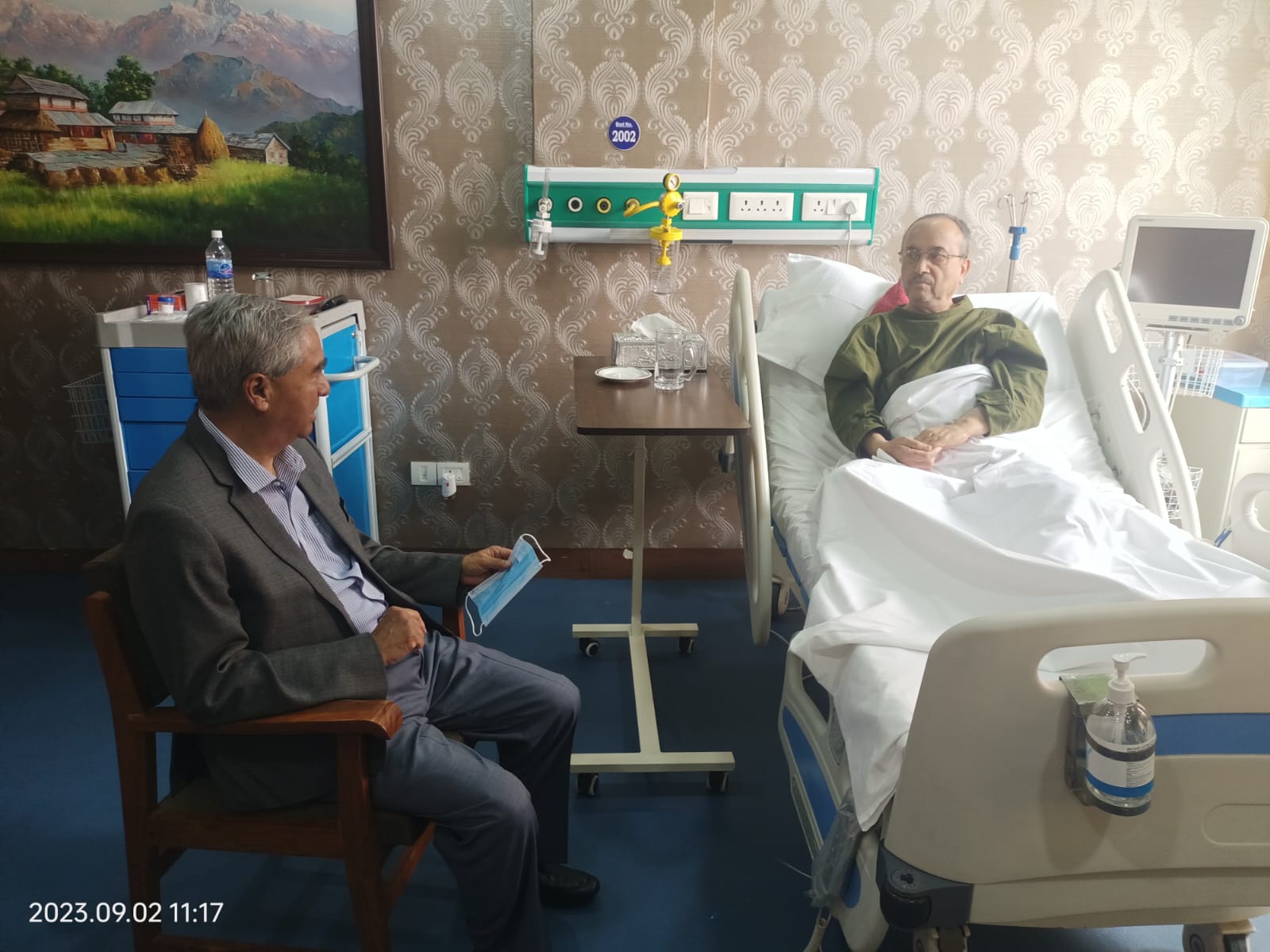 देउवाले आज विरेन्द्र सैनिक अस्पतालमा नै पुगेर खड्काको स्वास्थ्य अवस्थाबारे जानकारी लिएका हुन् ।