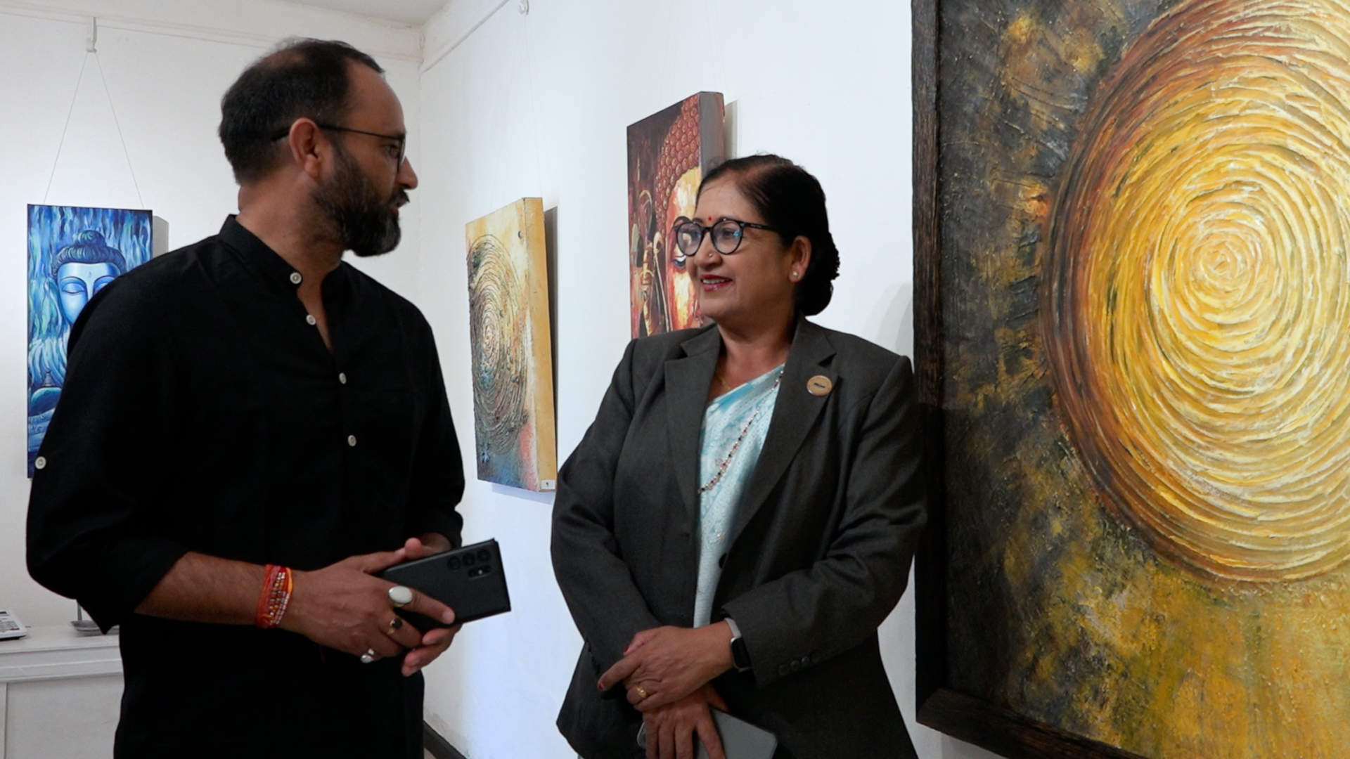 उनले भनिन्, ‘म गृहणीको साथै व्यवसायीक रुपमा कलाकार हुँ । म बच्चा बेलादेखि नै यो क्षेत्रमा काम गर्दै आएको छु । यहाँ प्रदर्शनमा रहेको जति पनि कला छ यो मेरो १० वर्षको संकलन हो । यो चित्रकला वुद्ध र ओसनमा आधारित छ किन भने हामी सबै भित्र वुद्ध हुन्छ र हाम्रो शरिरको धेरै मात्रा पानीबाट बनेको हुन्छ ।’