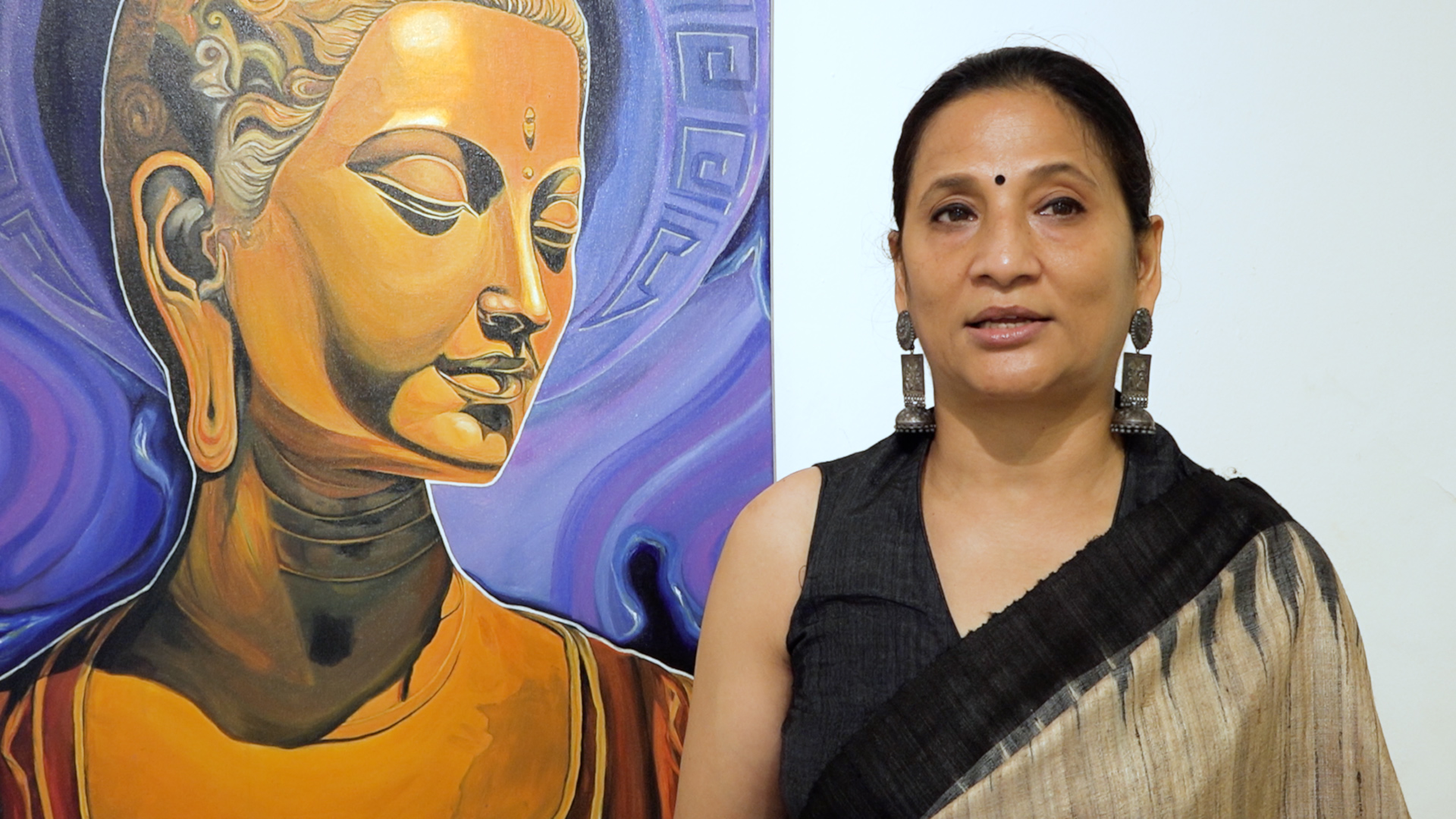 उनले आफू एउटा गृहिणीको साथै व्यवसायीक रुपमा कलाकार भएको भन्दै प्रस्तुत चित्रकला वुद्धको जीवनमा आधारित भएको बताईन् ।