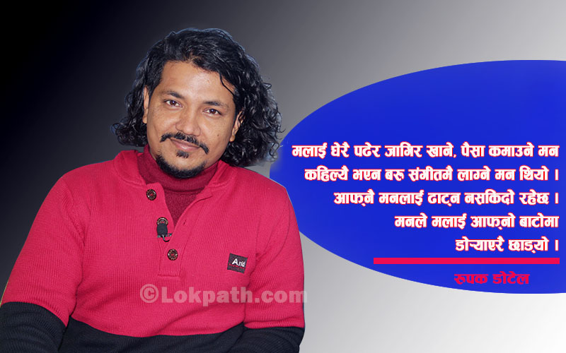 ‘आवाज सुनेर मात्रै स्रोता/दर्शकहरुको मनमा बस्न नसकिदो रहेछ आजकल,’ रुपक अगाडि थप्छन्, ‘स्वर सँगै सूरत पनि चिरपरिचत हुन जरुरी रहेछ ।’ यही कारण आगामी दिनमा आफूले भिडियोमा समेत देखापर्ने योजना बनाएको उनले लोकपथलाई सुनाए ।