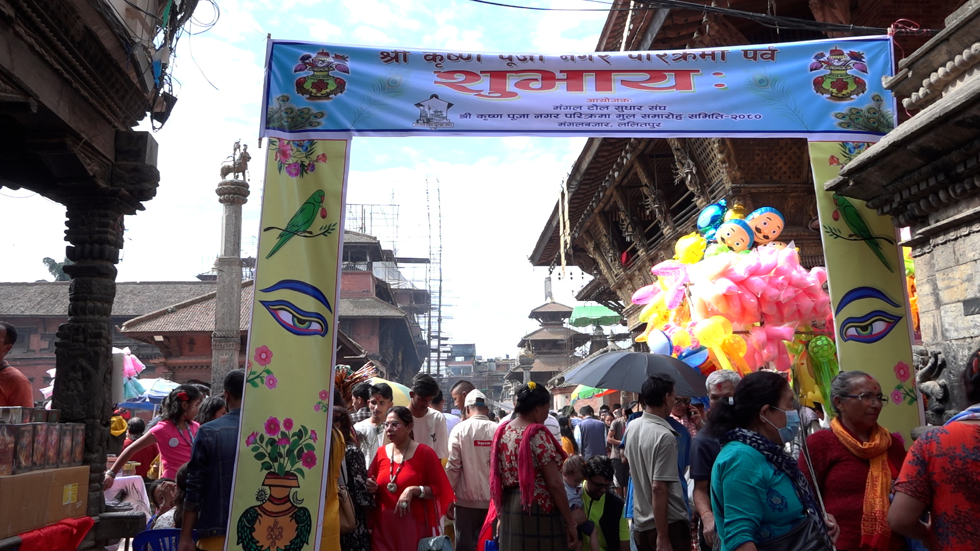 पूजा गर्नका लागि पाटन कृष्ण मन्दिरको दक्षिण र उत्तरतर्फबाट भक्तजनहरु लामबद्ध छन् । भक्तजनहरुले आफ्ना बालबालिकाहरुलाई कृष्ण र राधाको स्वरुपमा सिंगारेको पनि देखिन्छ ।
