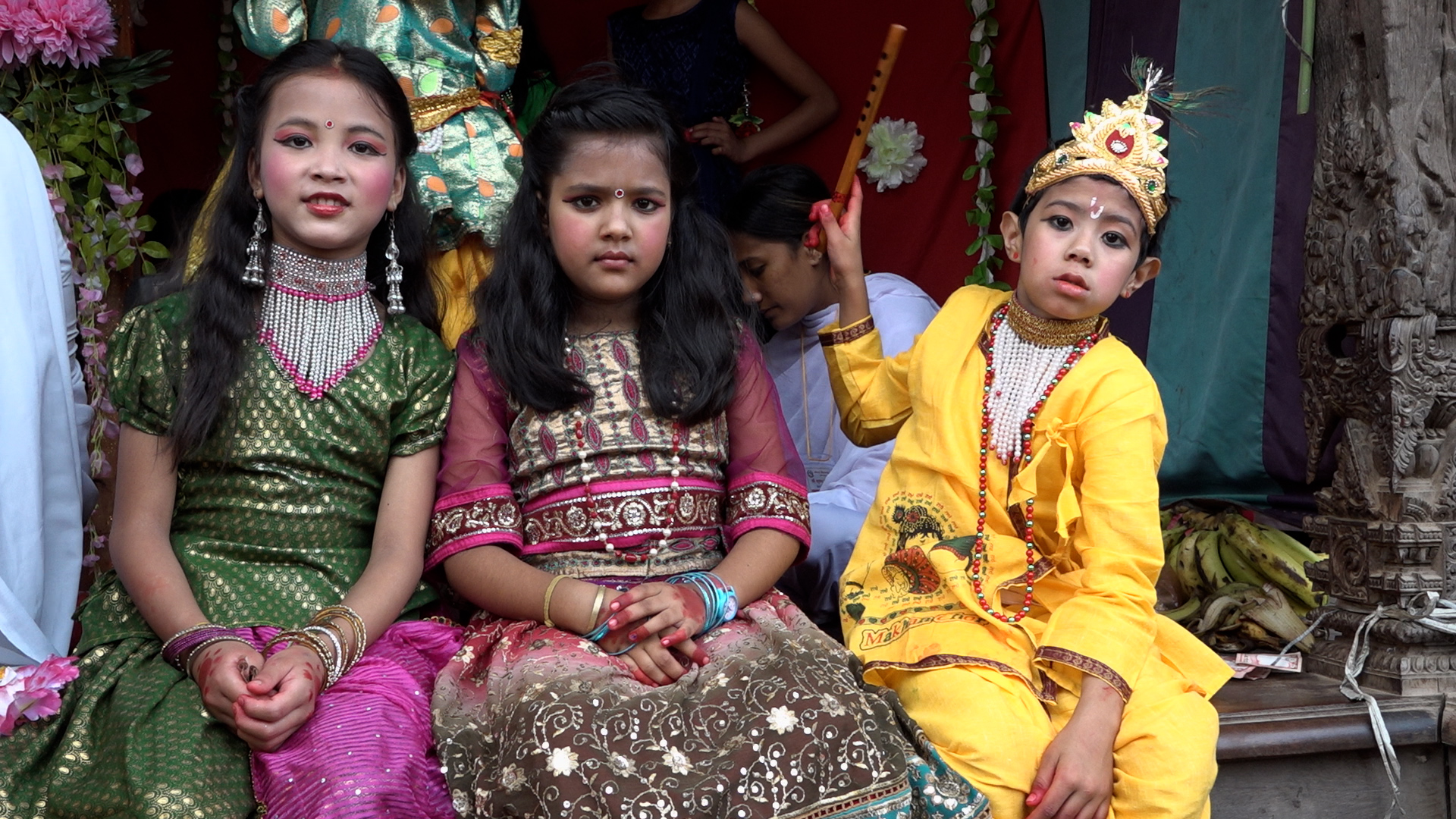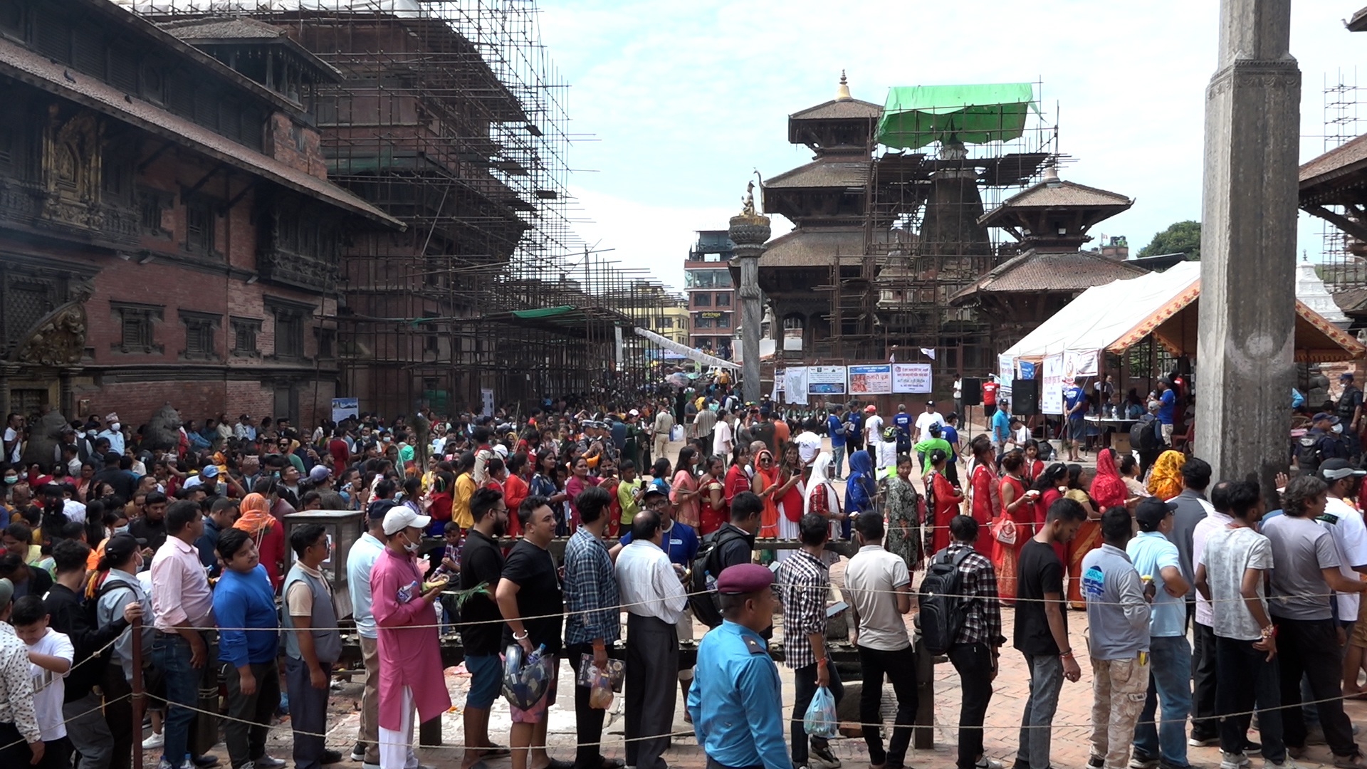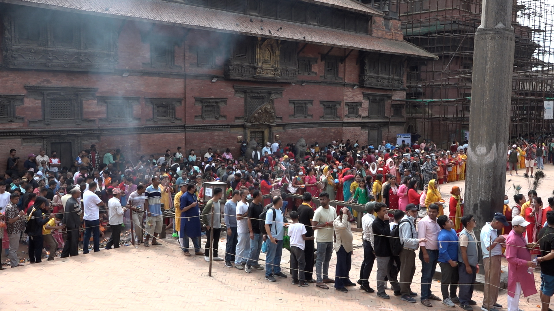 पूजा गर्नका लागि पाटन कृष्ण मन्दिरको दक्षिण र उत्तरतर्फबाट भक्तजनहरु लामबद्ध छन् । भक्तजनहरुले आफ्ना बालबालिकाहरुलाई कृष्ण र राधाको स्वरुपमा सिंगारेको पनि देखिन्छ ।