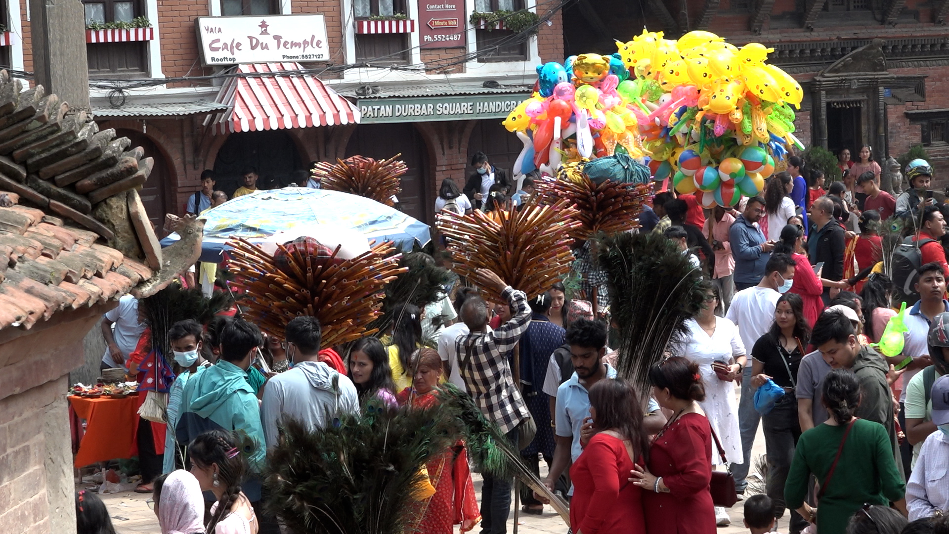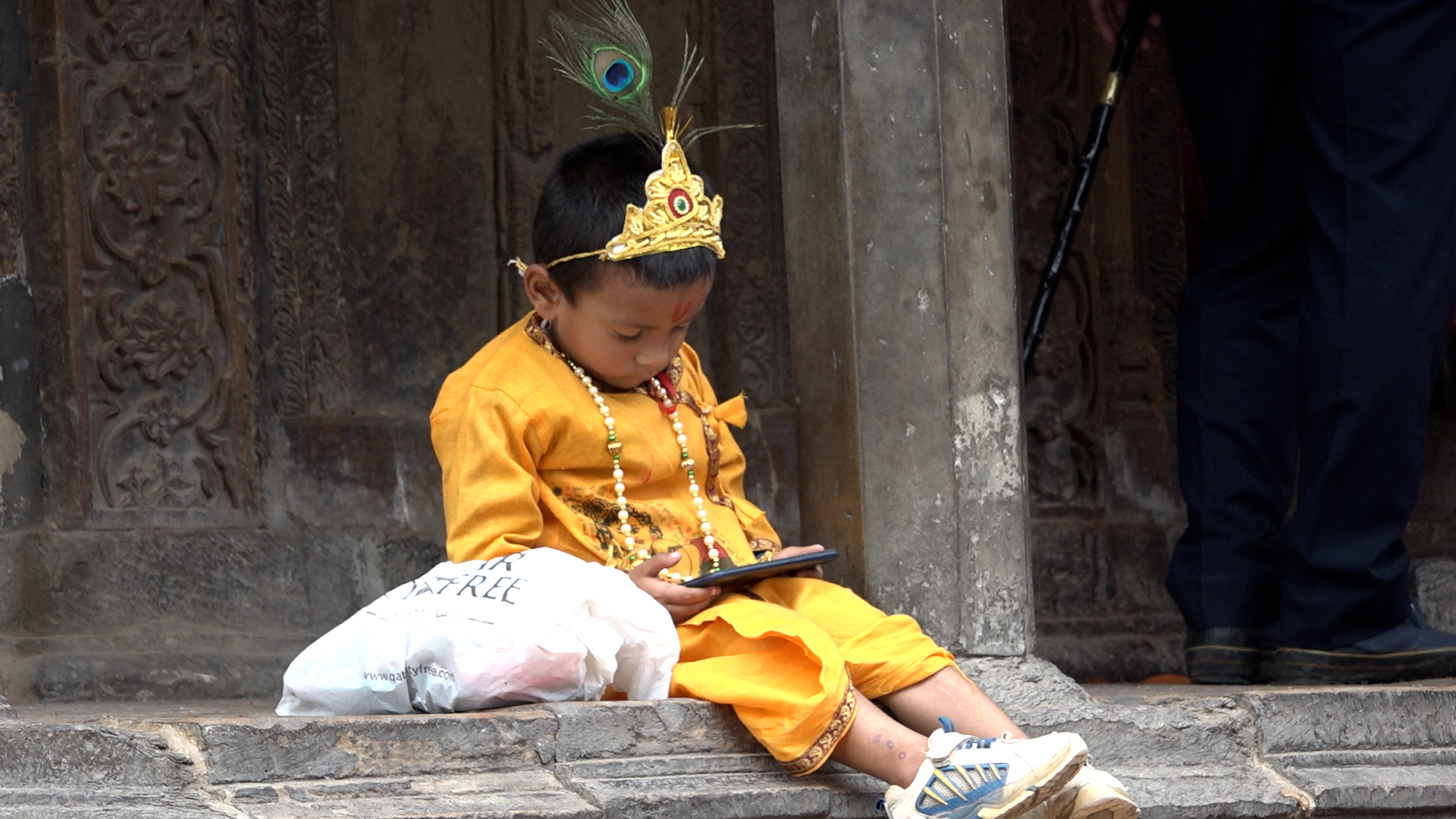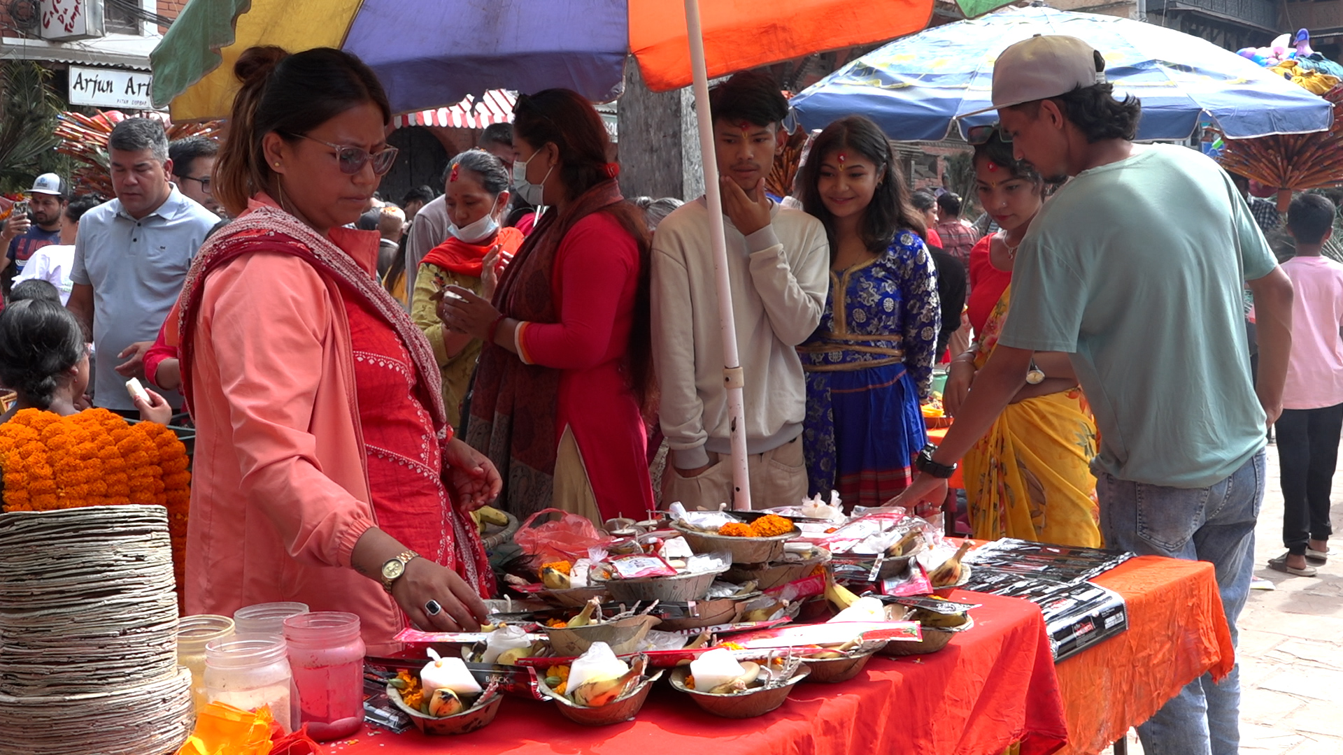 पूजा गर्नका लागि पाटन कृष्ण मन्दिरको दक्षिण र उत्तरतर्फबाट भक्तजनहरु लामबद्ध छन् । भक्तजनहरुले आफ्ना बालबालिकाहरुलाई कृष्ण र राधाको स्वरुपमा सिंगारेको पनि देखिन्छ ।
